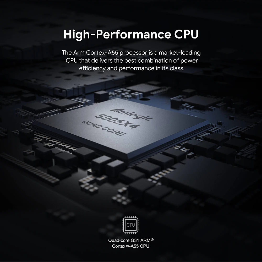 1, CPU: Amlogic S905X4 Quad Core ARM Cortex-A55