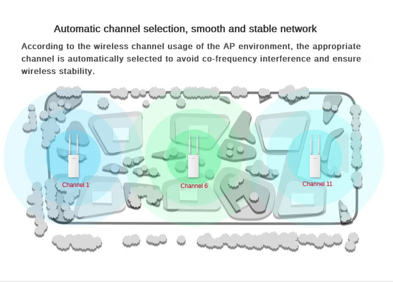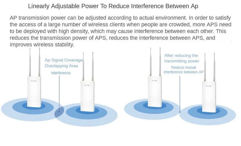 La potencia se ajusta rápidamente, reduciendo eficazmente la interferencia mutua entre APs.