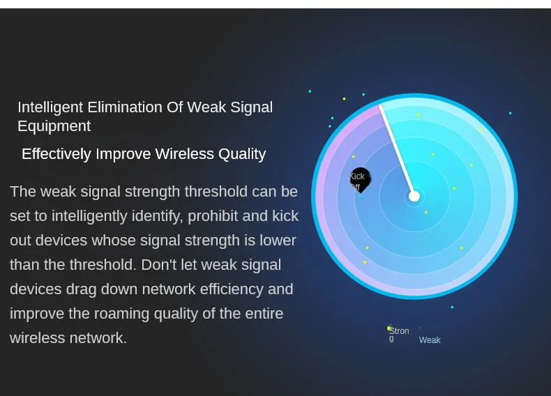 Elimina automáticamente el equipo de señal débil, evita arrastrar toda la red y mejora el rendimiento de la red inalámbrica.
