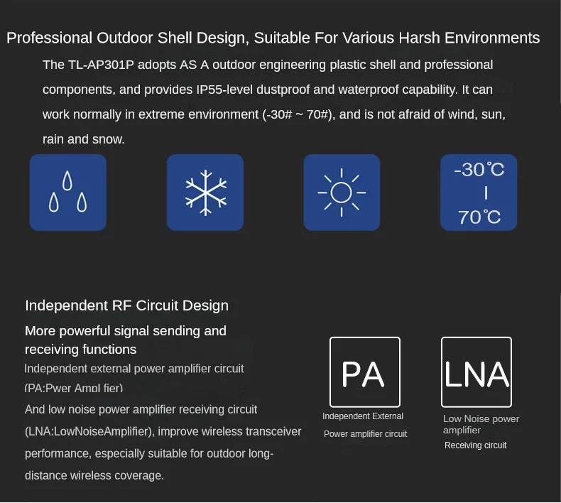 Diseño profesional de carcasa al aire libre, impermeable y a prueba de polvo puede alcanzar IP65, y la temperatura de trabajo puede