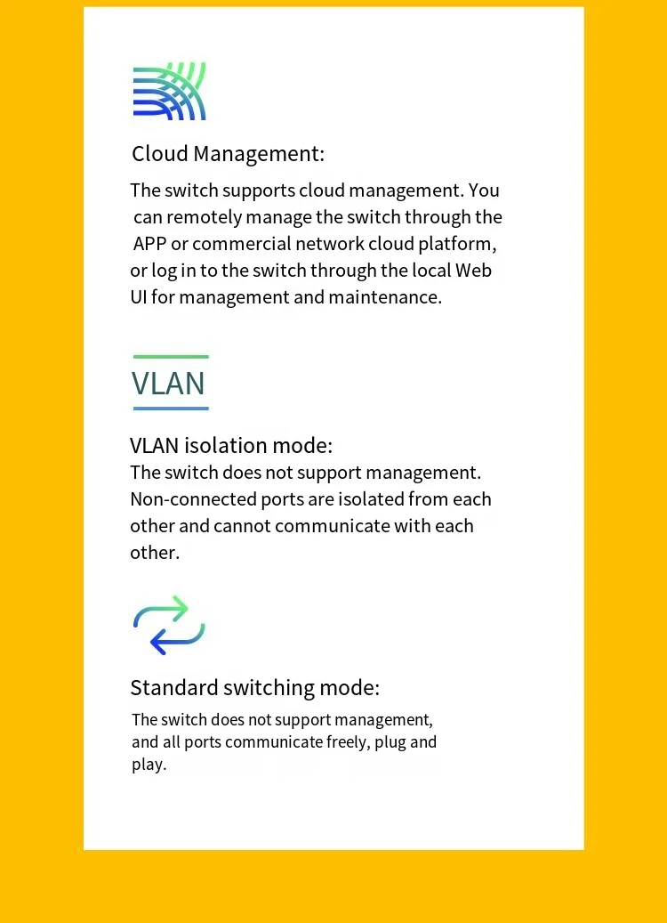 Temperatura de trabajo del ambiente de uso: 0 ℃ ~ 40 ℃ Temperatura de almacenamiento: -40 ℃ ~ 70 ℃ Humedad de trabajo: 10% ~ 90% RH Humedad de almacenamiento sin condensación: 5% ~ 90% RH sin condensación