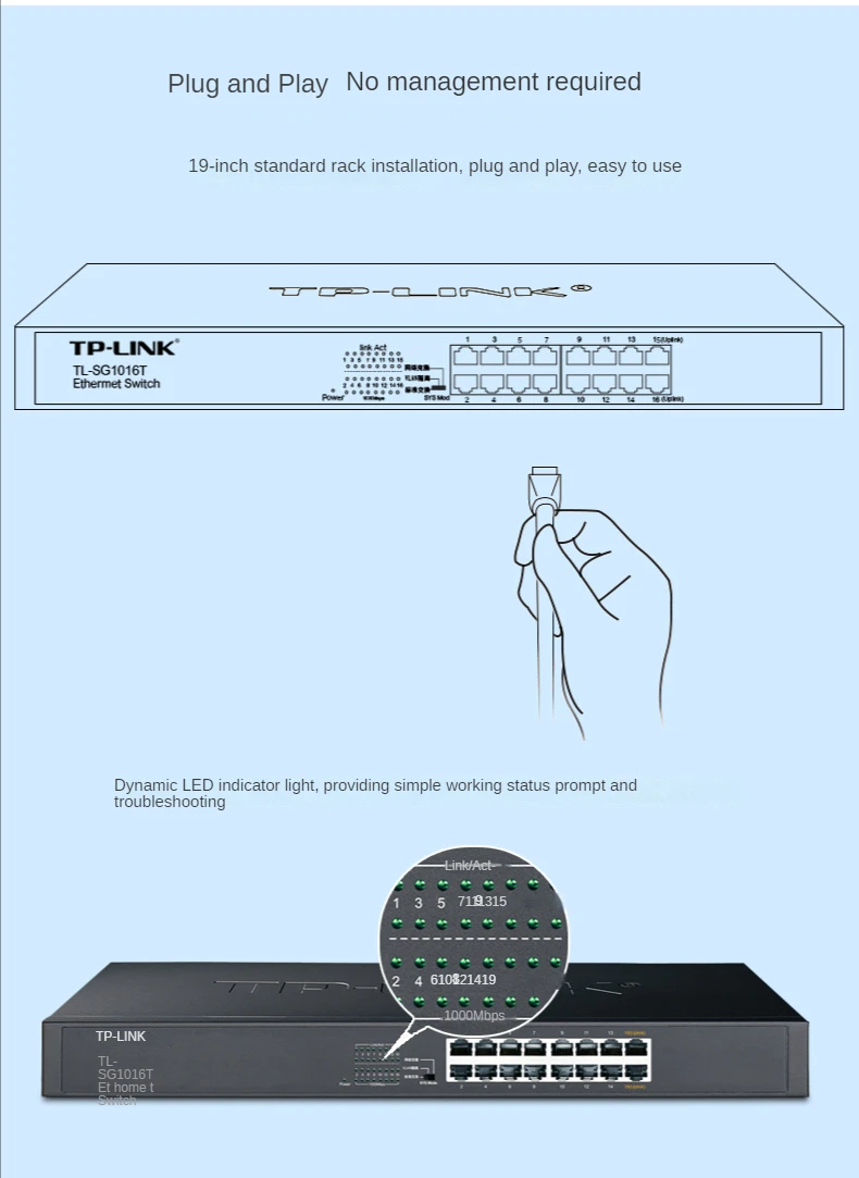 Comprar Tp-link-conmutador Gigabit de 16 puertos, 1000Mbps, gestión de escritorio, Hub de red, dúplex completo/medio, SG2016D, aislamiento de proximidad, Vlan