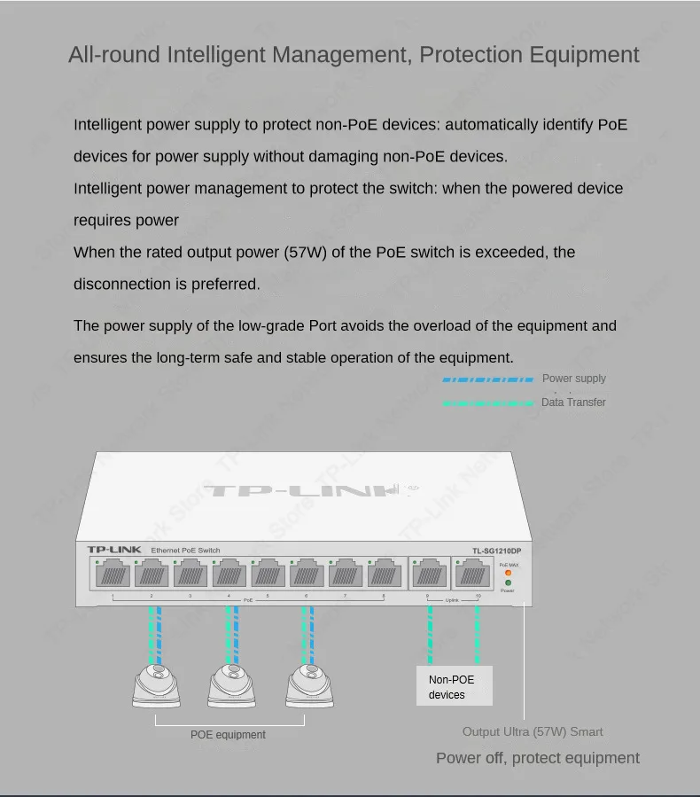 Comprar Tp-link-conmutador Gigabit PoE de 10 puertos, fuente de alimentación de 48V, divisor de red de 10/100/1000Mbps, Hub Ethernet para cámara Ip
