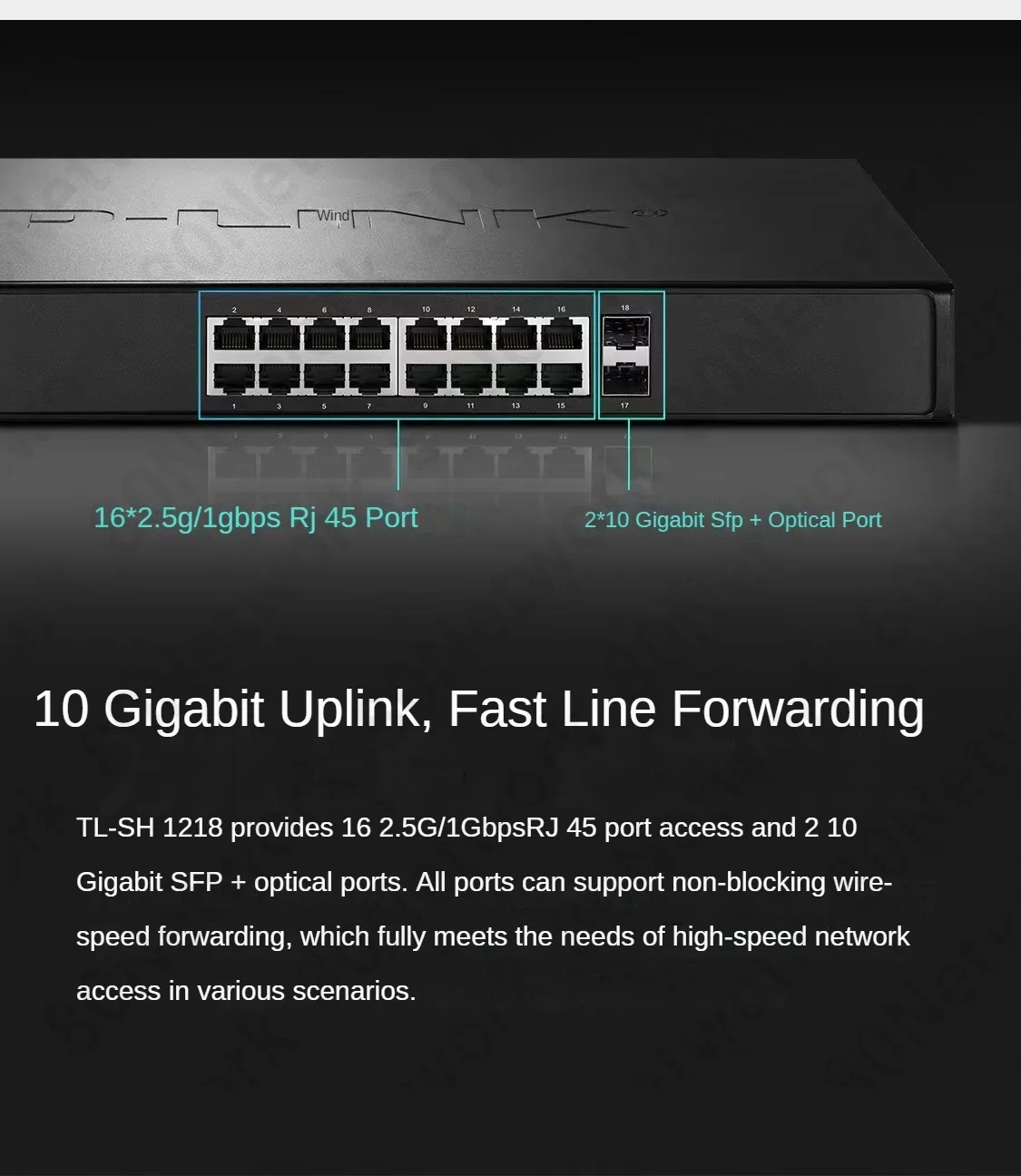 Comprar Tp-link-conmutador RJ45 de 16 puertos, 2,5 Gbps, 2500M, UPLink, 10G, SFP + LAN Core, NAS, divisor Ethernet, TL-SH1218 HUB