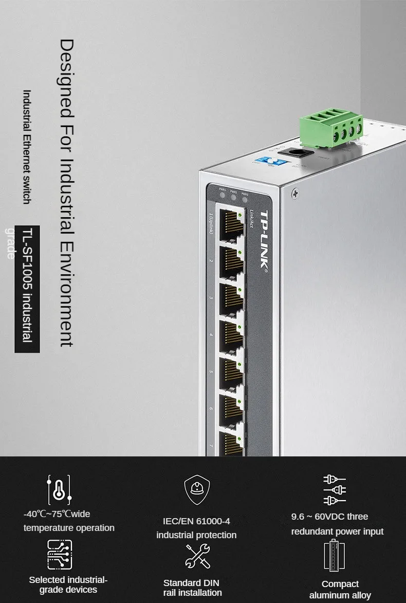 Comprar TP-Link Tl-SF1005 Conmutador Ethernet de 100M Conmutador Ethernet de 5 puertos de grado Industrial Divisor de red Hub TP Carcasa de aleación de cobre