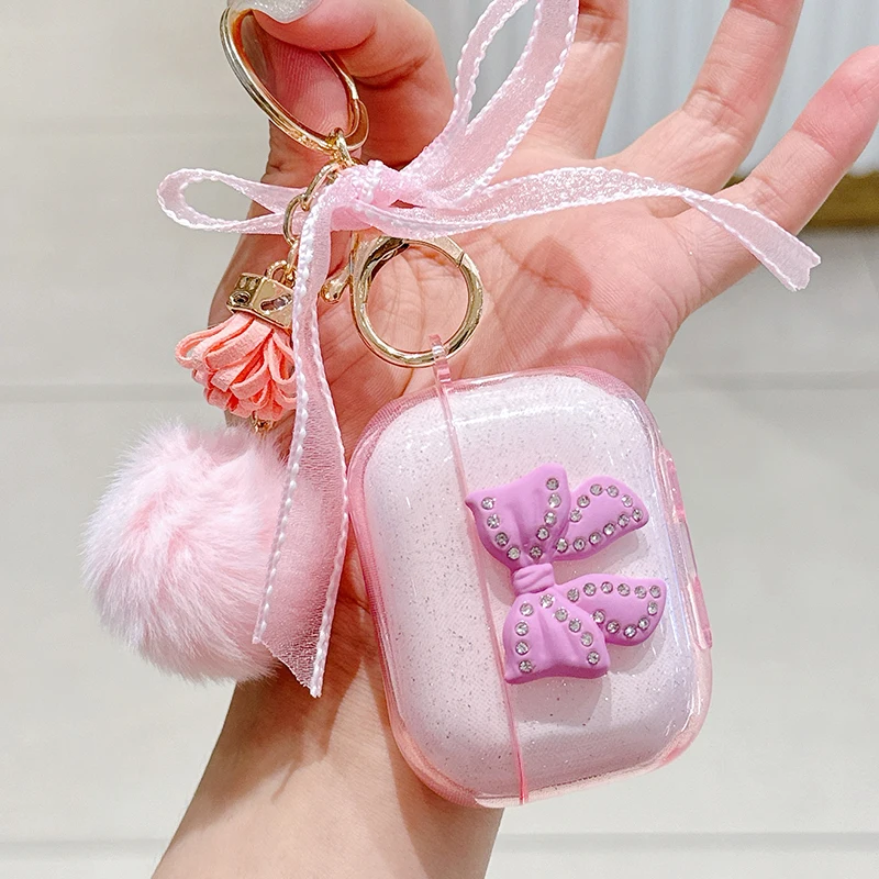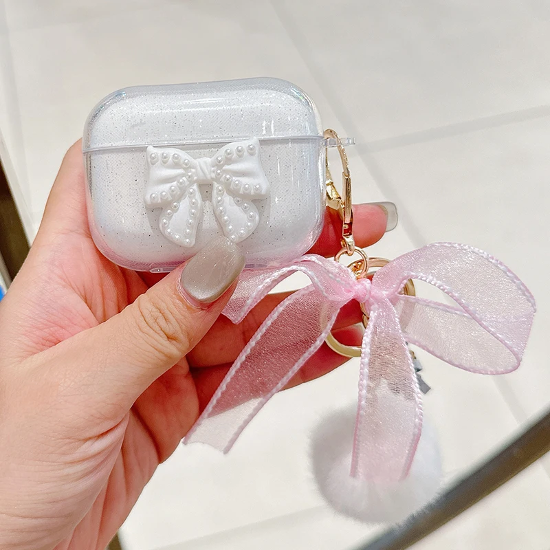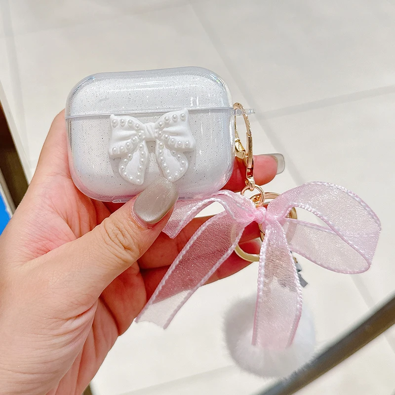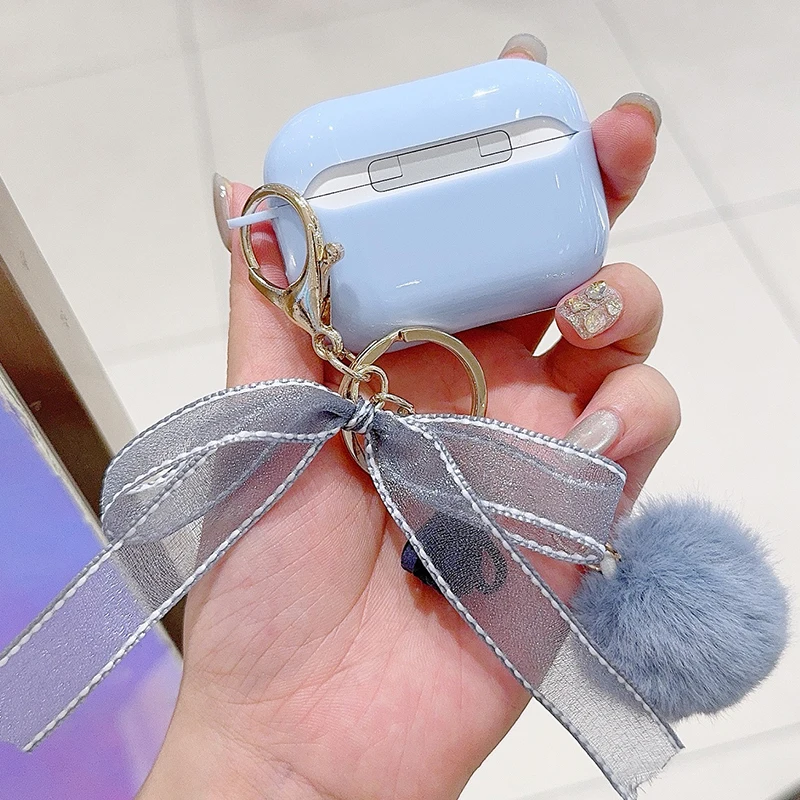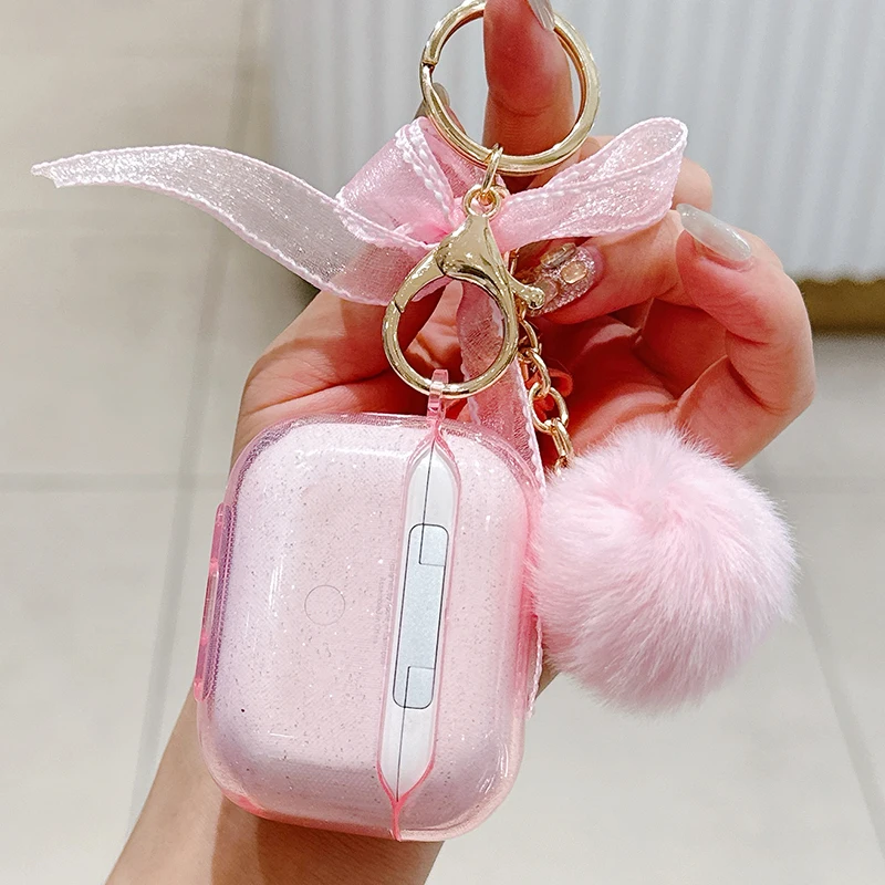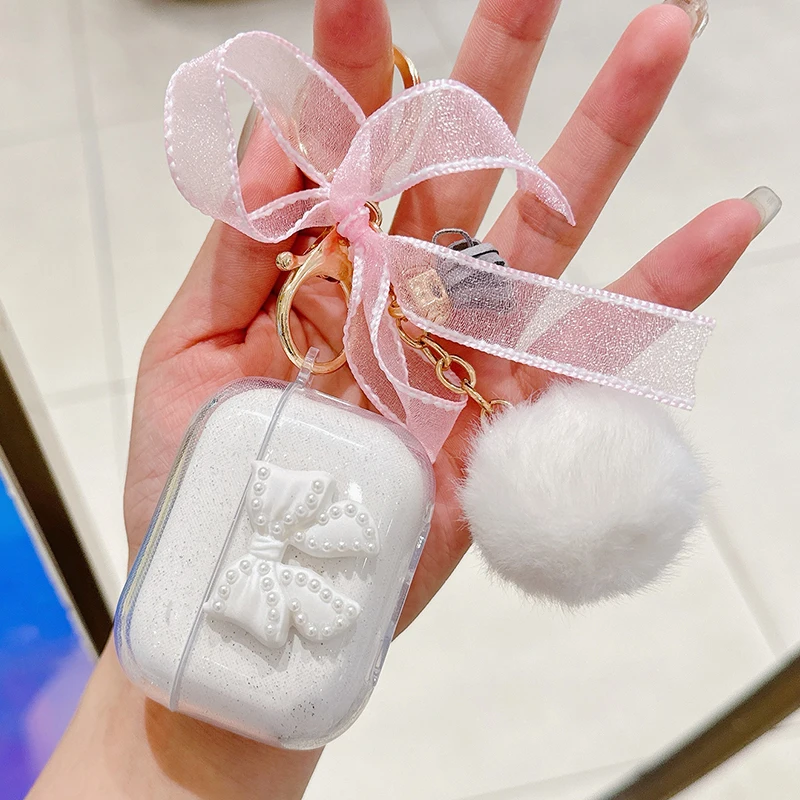 Trabajo hecho a mano lazo brillante con funda de lujo para Airpod Pro 2 Airpods 3 2 1 para mujeres con llavero de felpa cubierta de auriculares Bluetooth