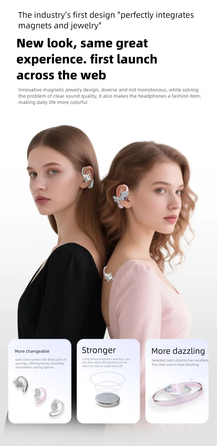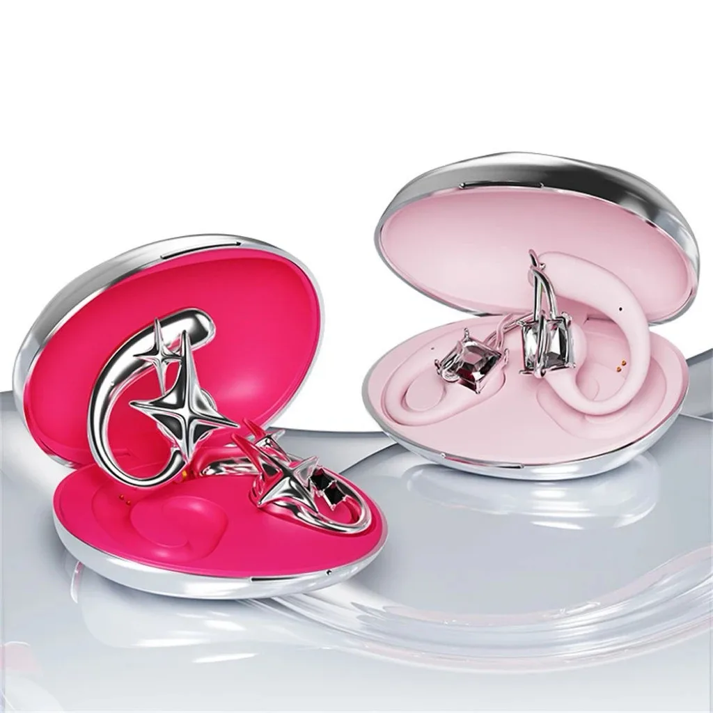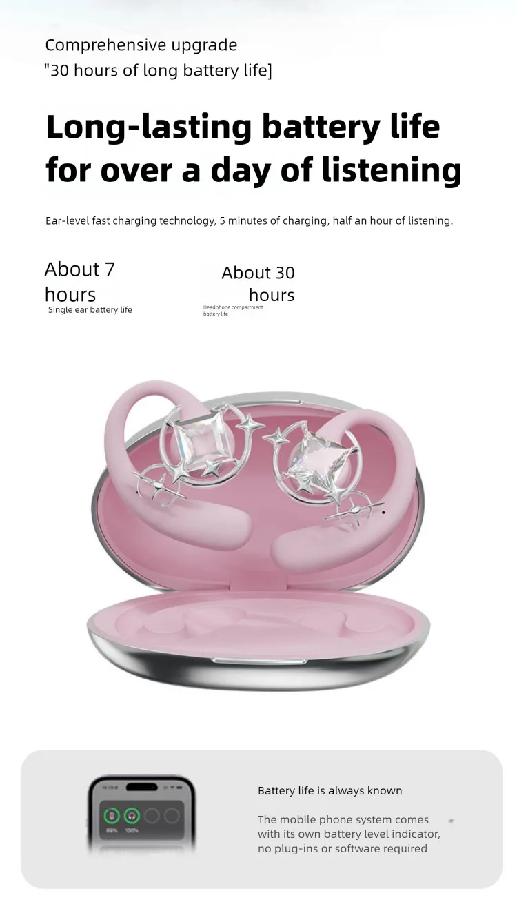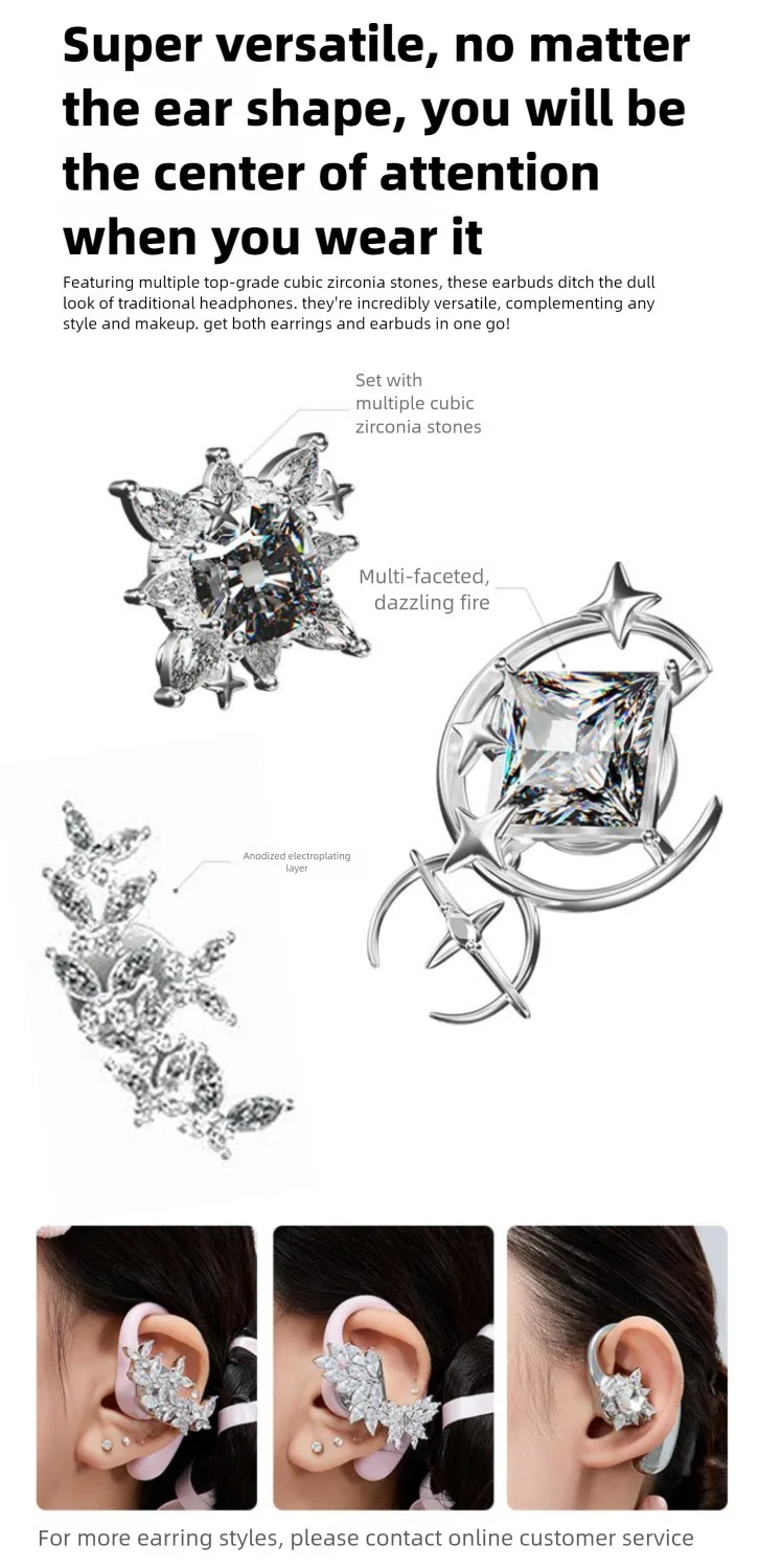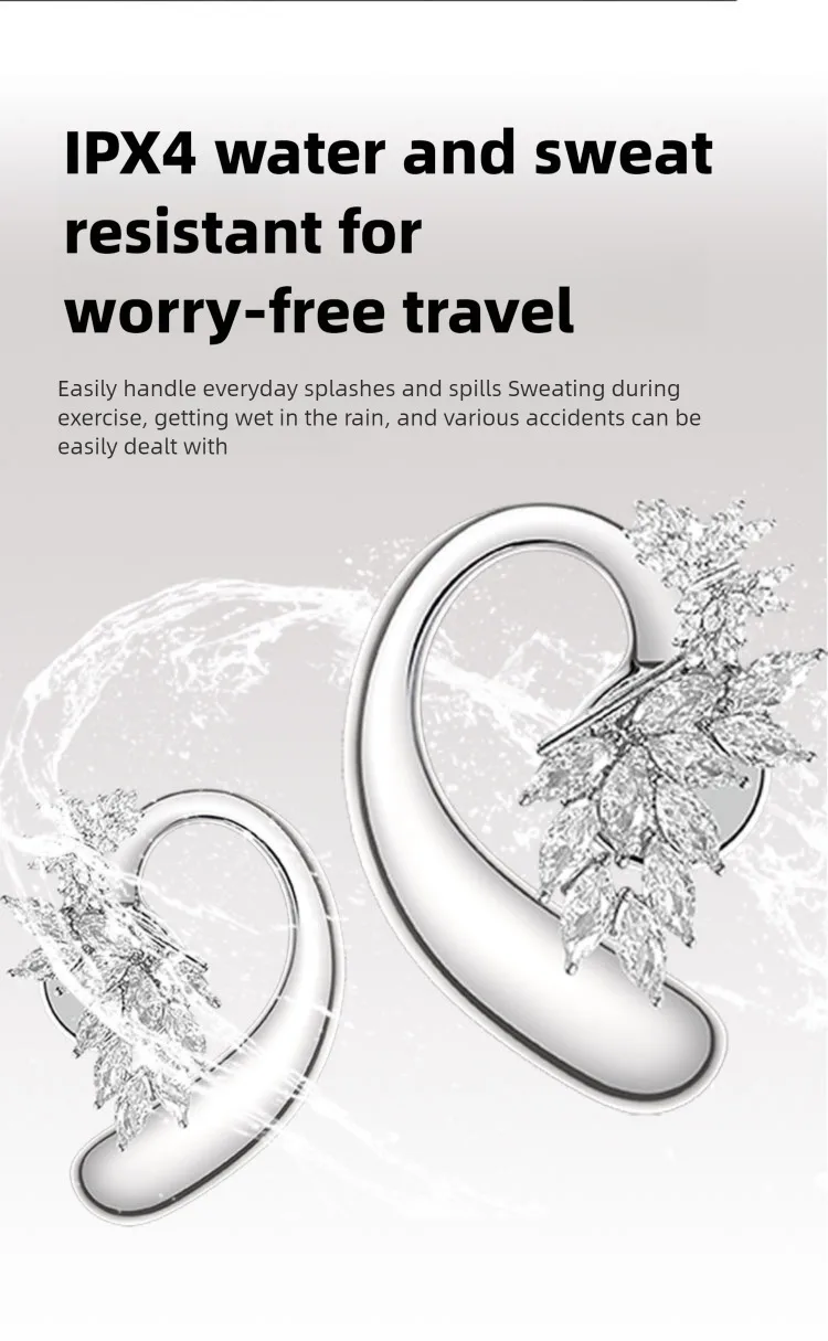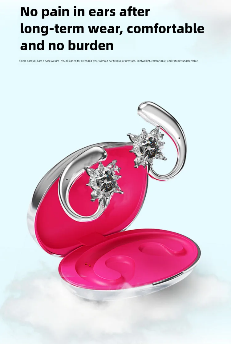 Auriculares inalámbricos con gancho para la oreja Bluetooth, joyería con tachuelas de diamantes, batería de larga duración IPX4, auriculares impermeables para niñas, regalos
