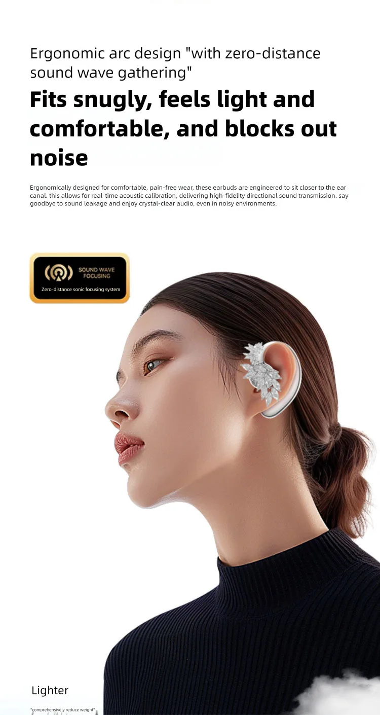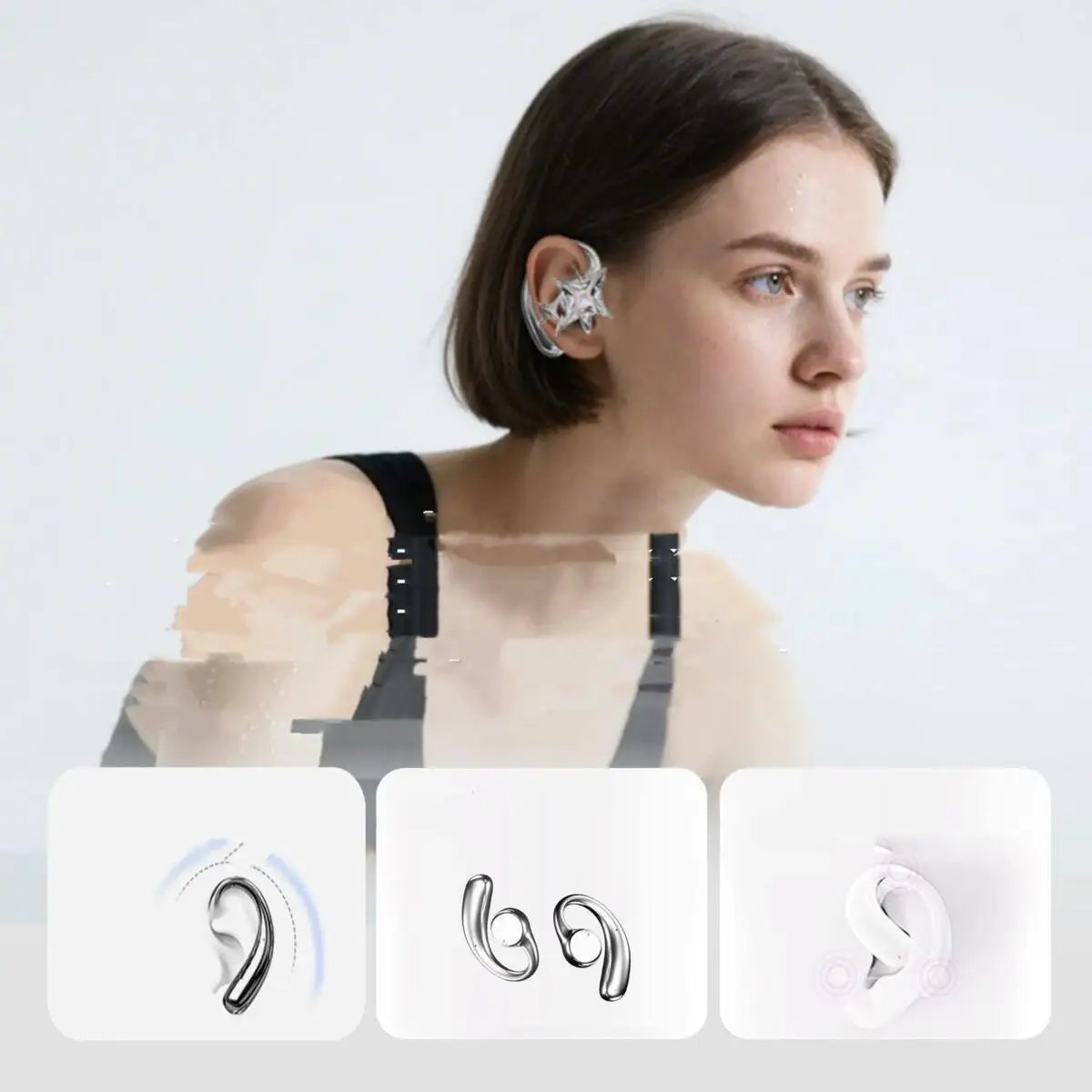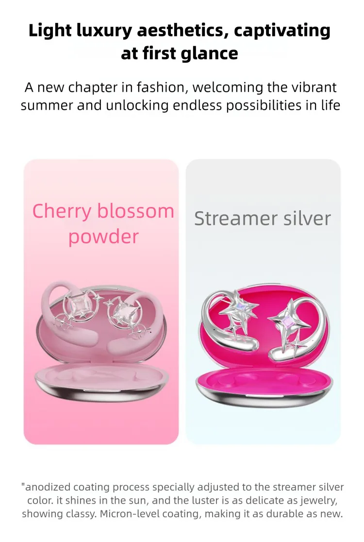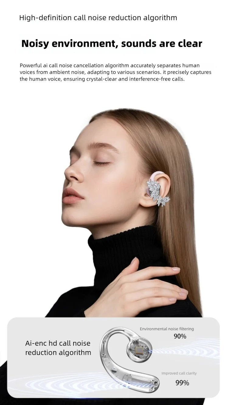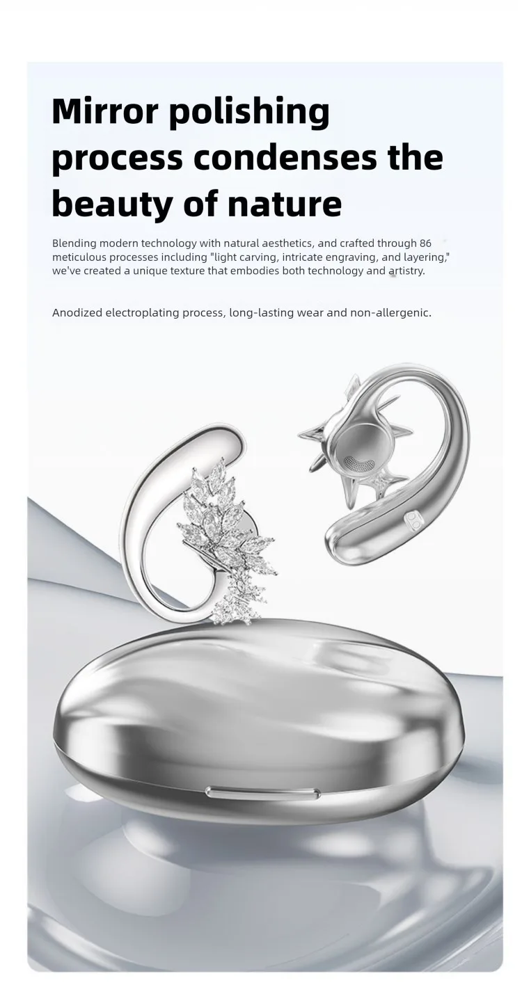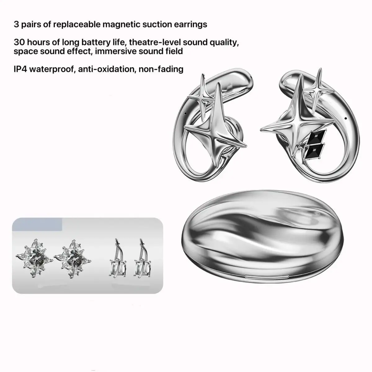 Auriculares inalámbricos con gancho para la oreja Bluetooth, joyería con tachuelas de diamantes, batería de larga duración IPX4, auriculares impermeables para niñas, regalos