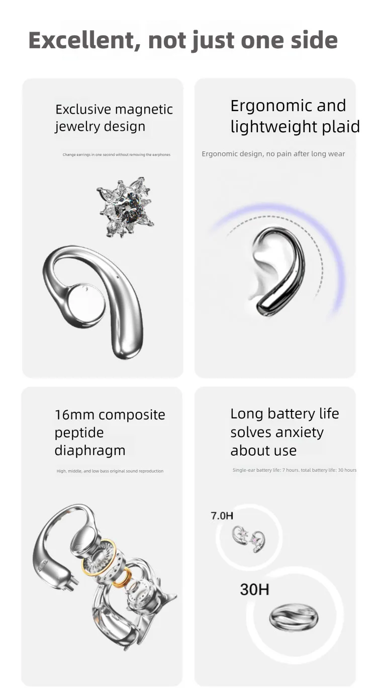 - Estética de escucha: las joyas se pueden convertir en auriculares, las joyas caben en el compartimento de los auriculares.