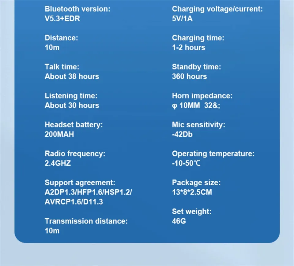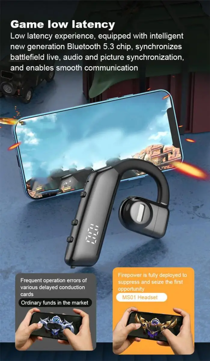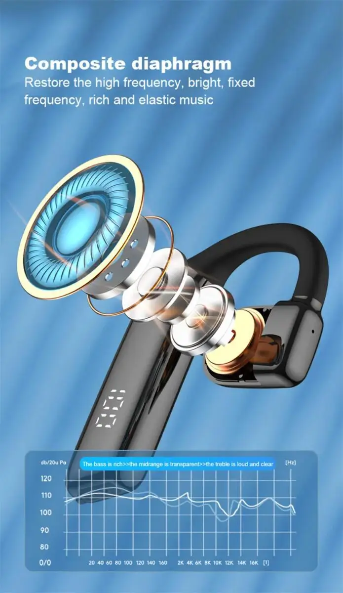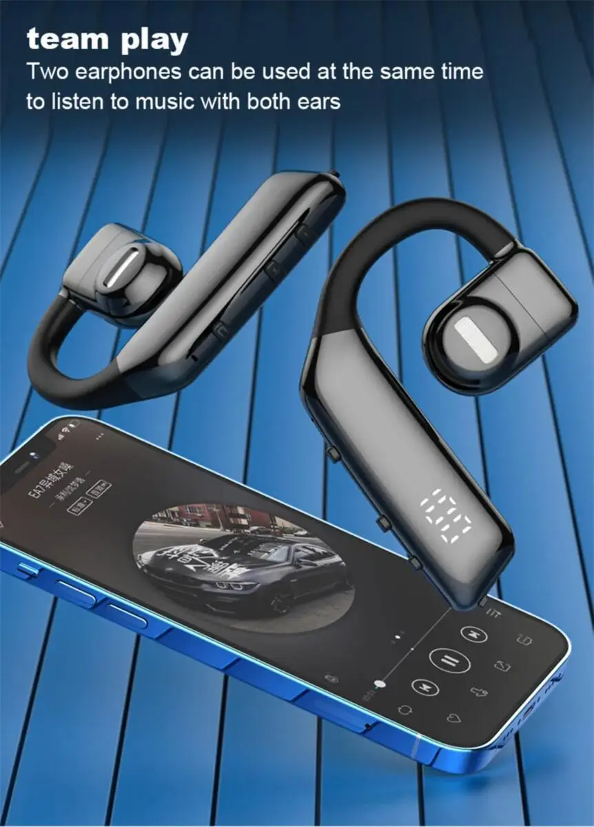 - Diseño ergonómico y liviano, los auriculares Bluetooth solo pesan 17 gramos, uso cómodo sin presión.