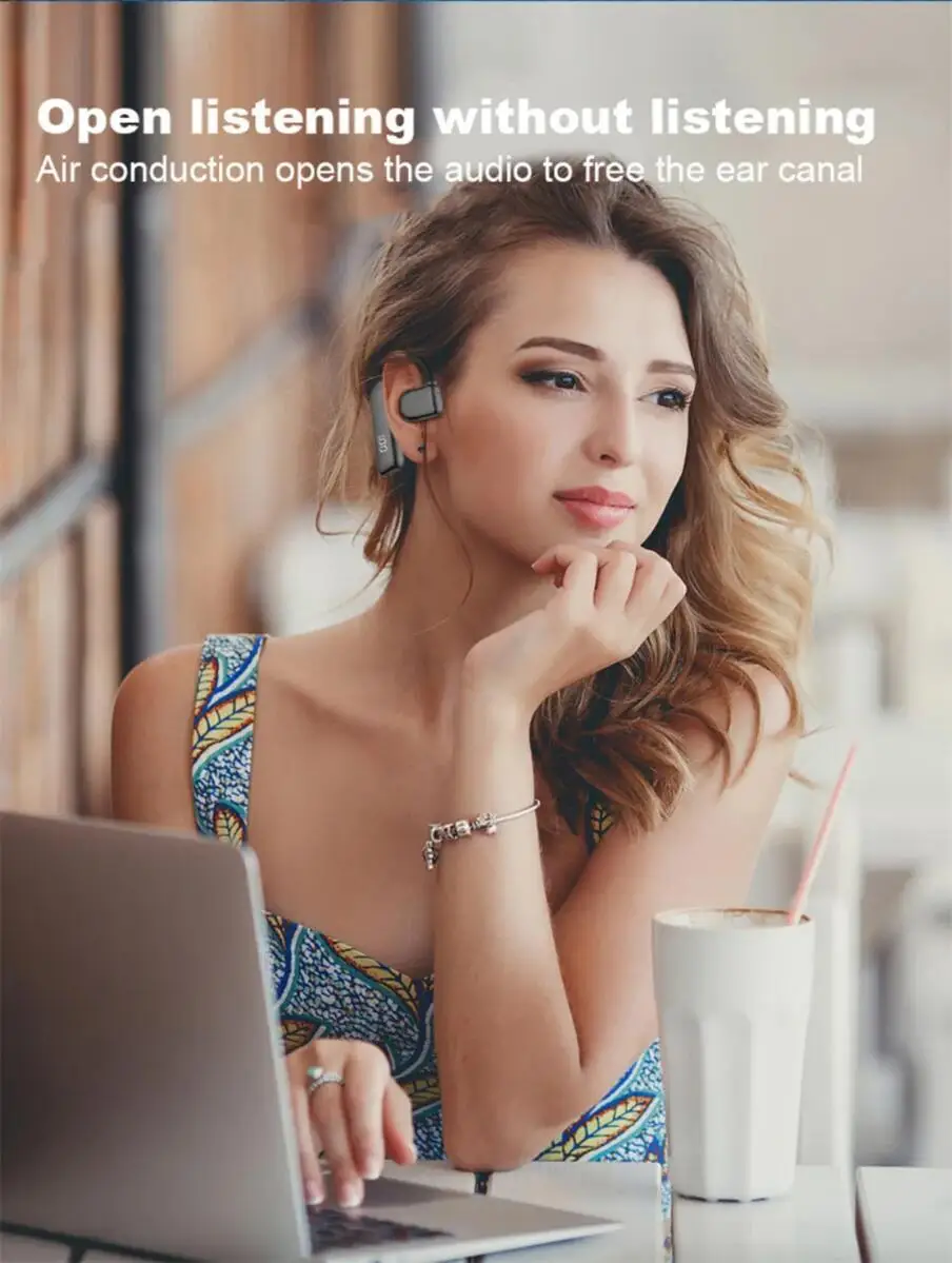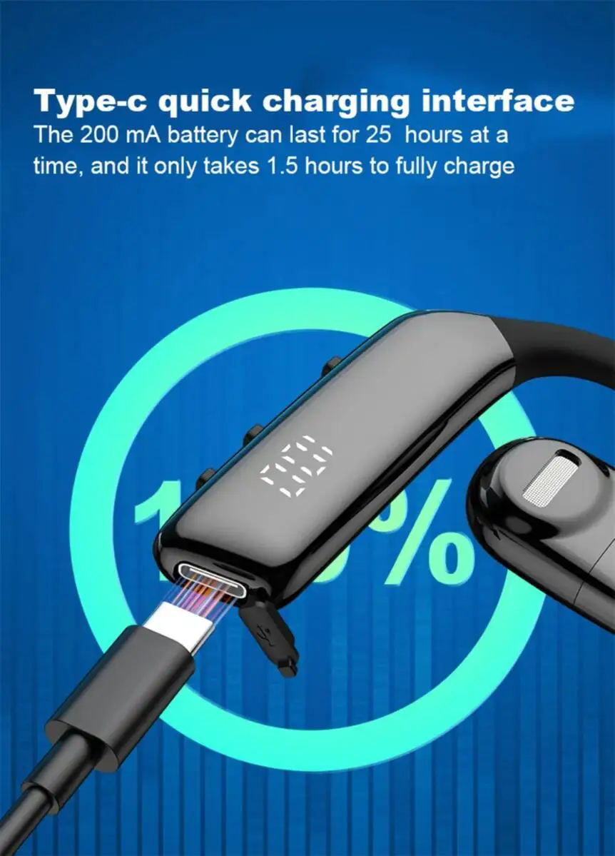 OWS Auriculares inalámbricos con gancho para la oreja Bluetooth de conducción de aire Pantalla de alimentación LED estéreo HIFI 180° Auriculares giratorios para deportes musicales