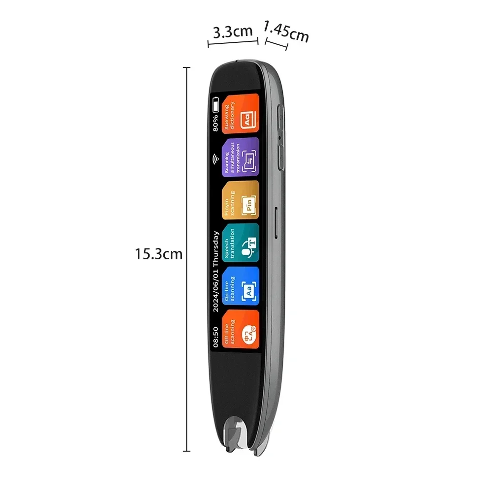 Pantalla táctil de alta definición: el Scan Reader Pen cuenta con una pantalla táctil de alta definición de 3,7", que proporciona un efecto de visualización claro y una experiencia de operación intuitiva.Con su tecnología avanzada, los usuarios pueden navegar fácilmente por diversas funciones.