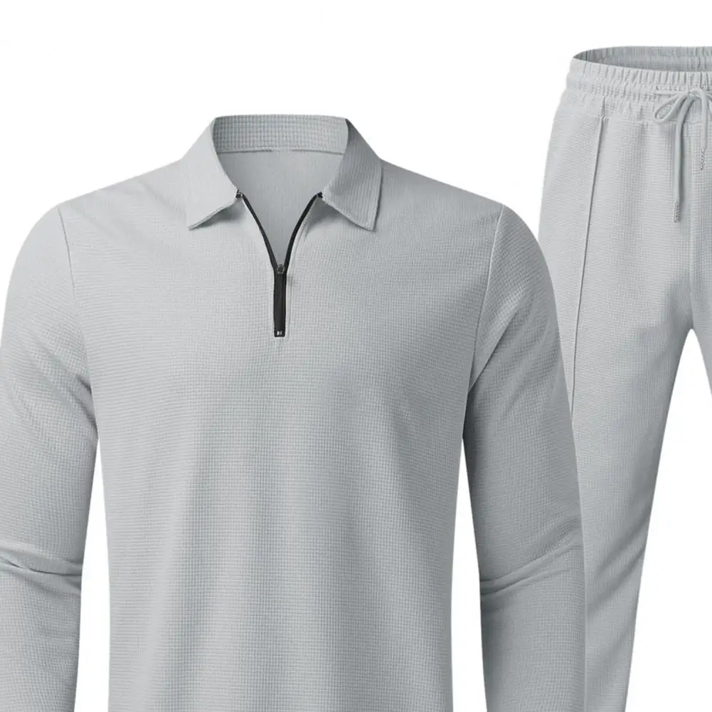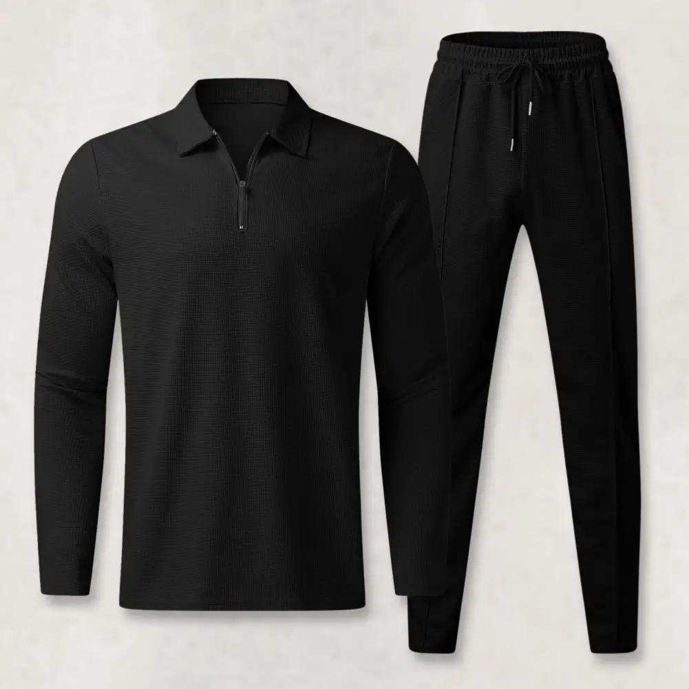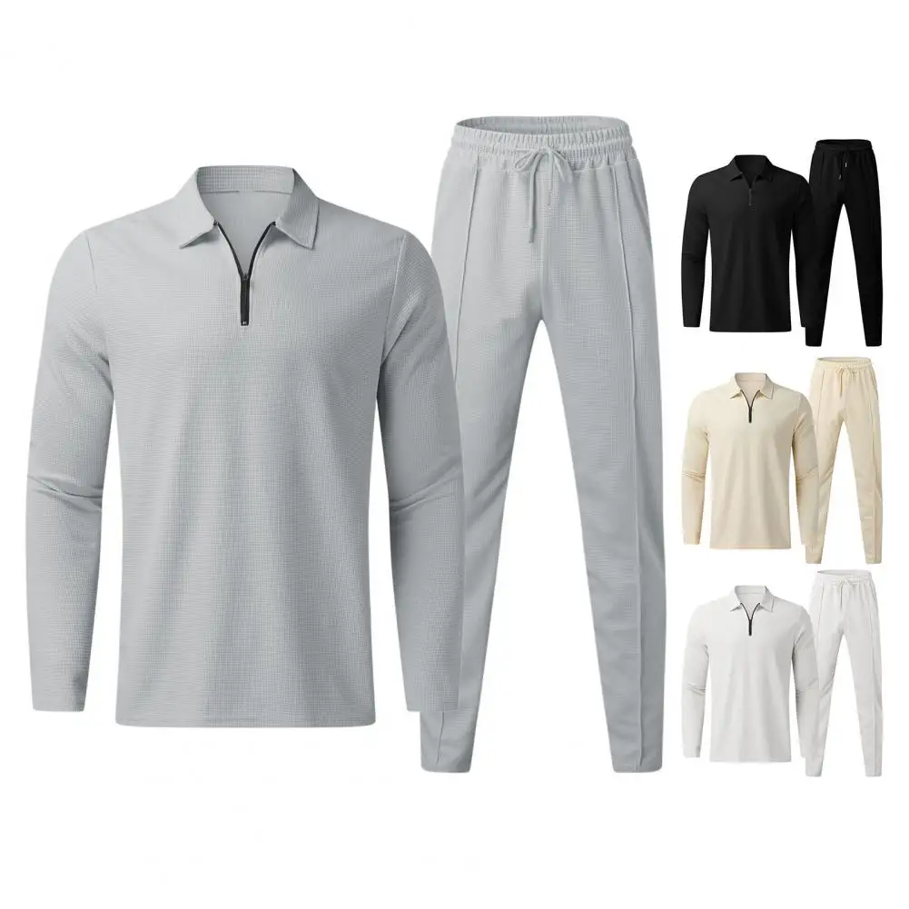 Traje de corte regular para hombre, conjunto de chándal de 2 piezas para hombre con camisa con cuello vuelto, Top de manga larga, cintura elástica con cordón para otoño