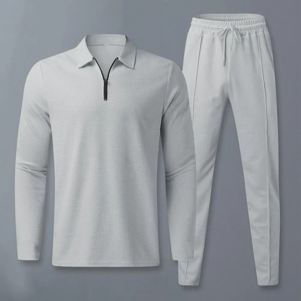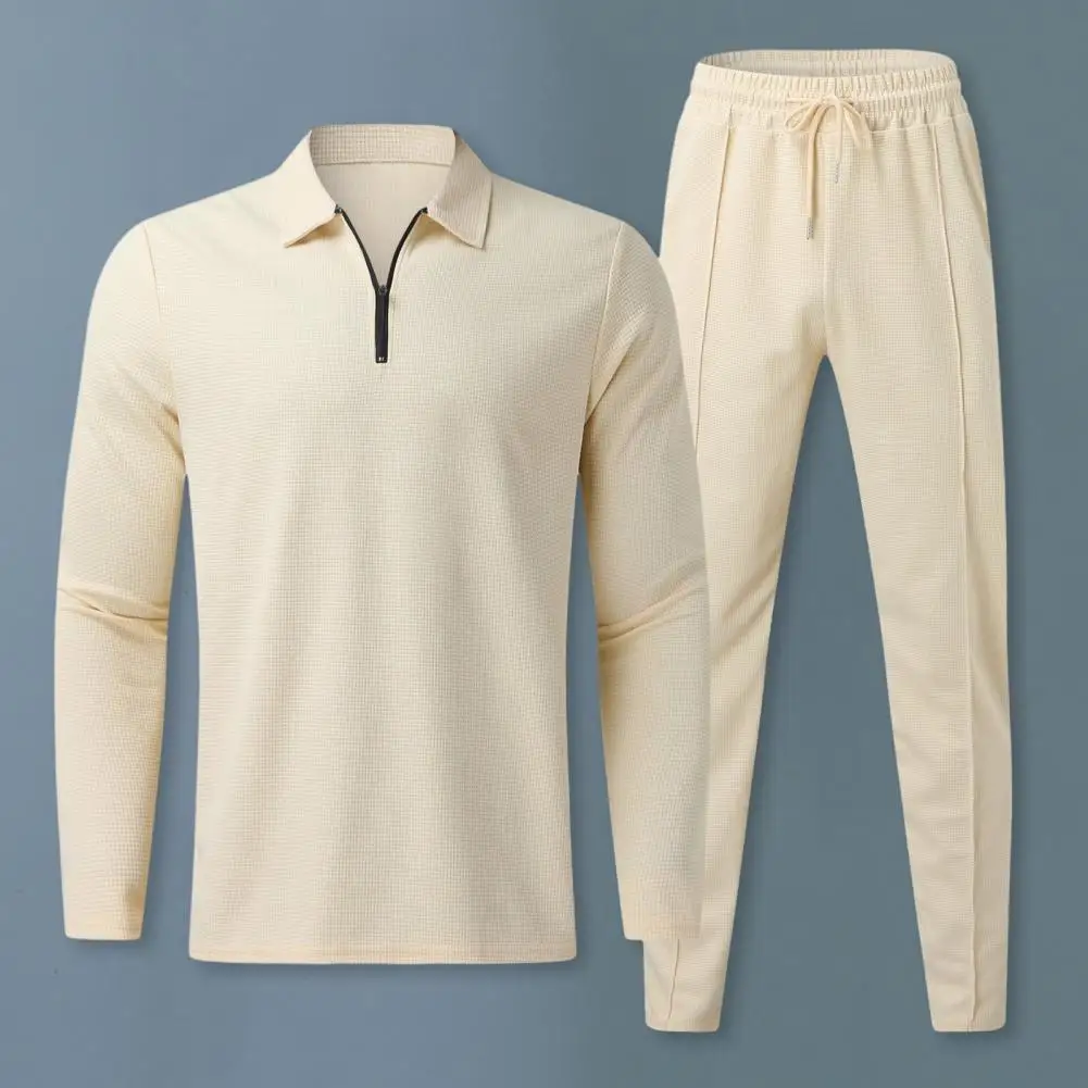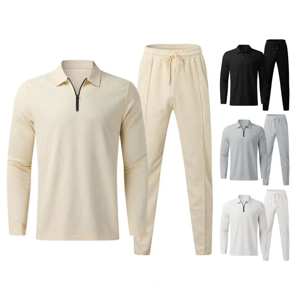 Traje de corte regular para hombre, conjunto de chándal de 2 piezas para hombre con camisa con cuello vuelto, Top de manga larga, cintura elástica con cordón para otoño