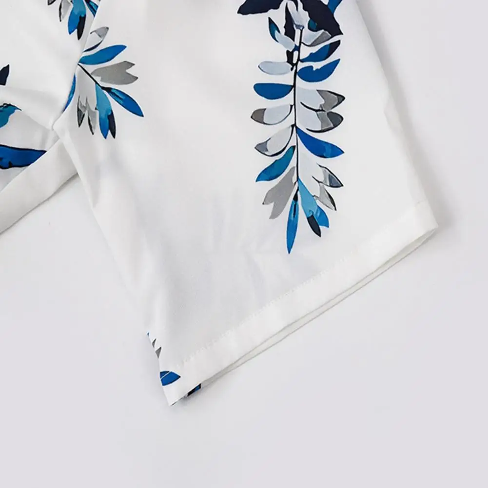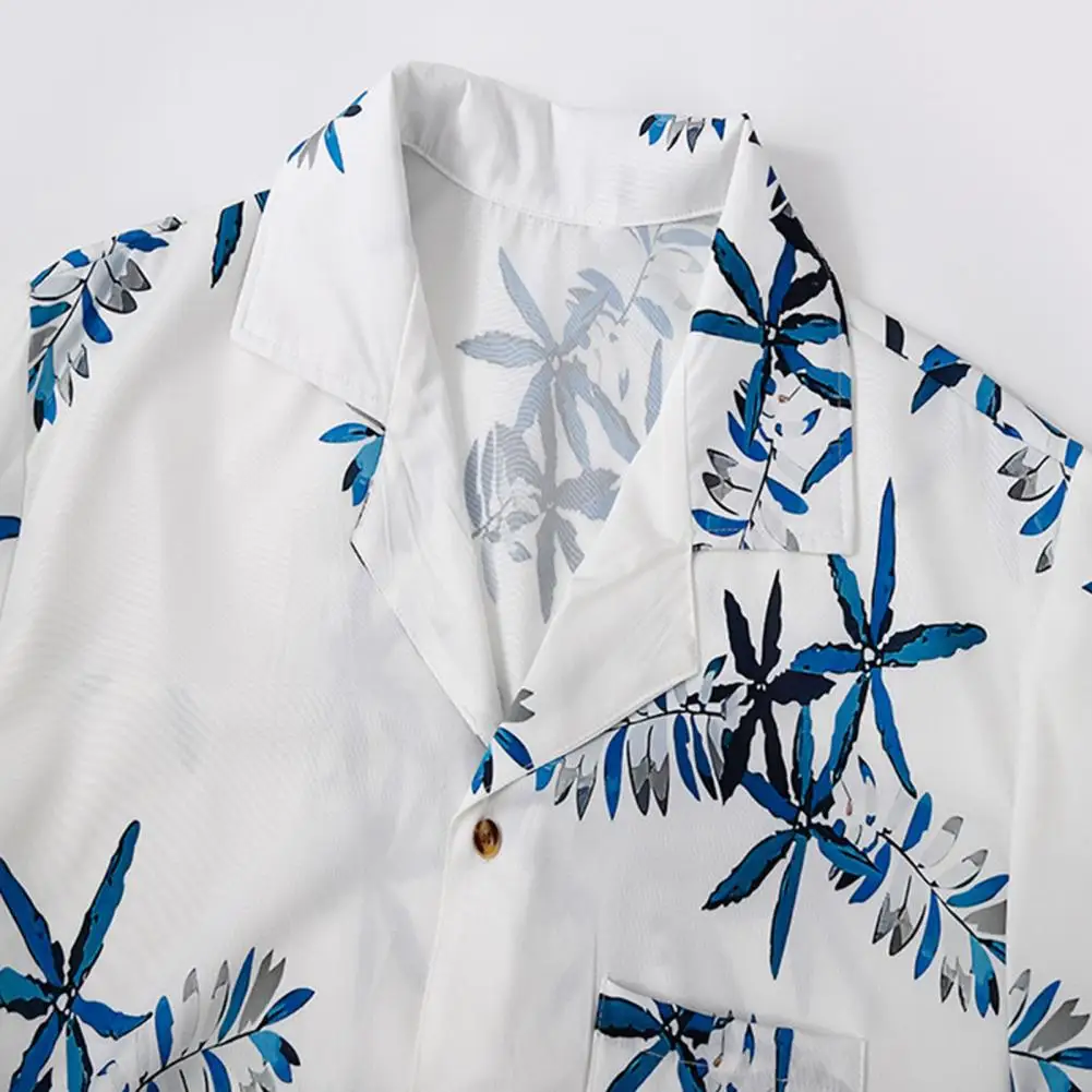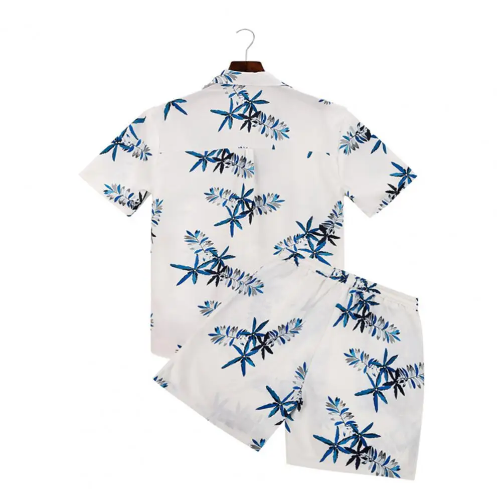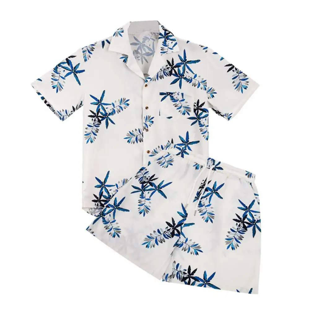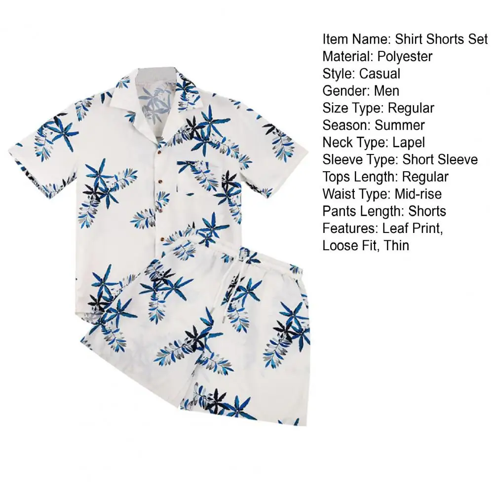 Traje con estampado tropical Camisa con estampado de hojas tropicales Conjunto de pantalones cortos Ropa de playa con solapa Top Cintura elástica Pantalones cortos Diseño botánico 2 unids/set