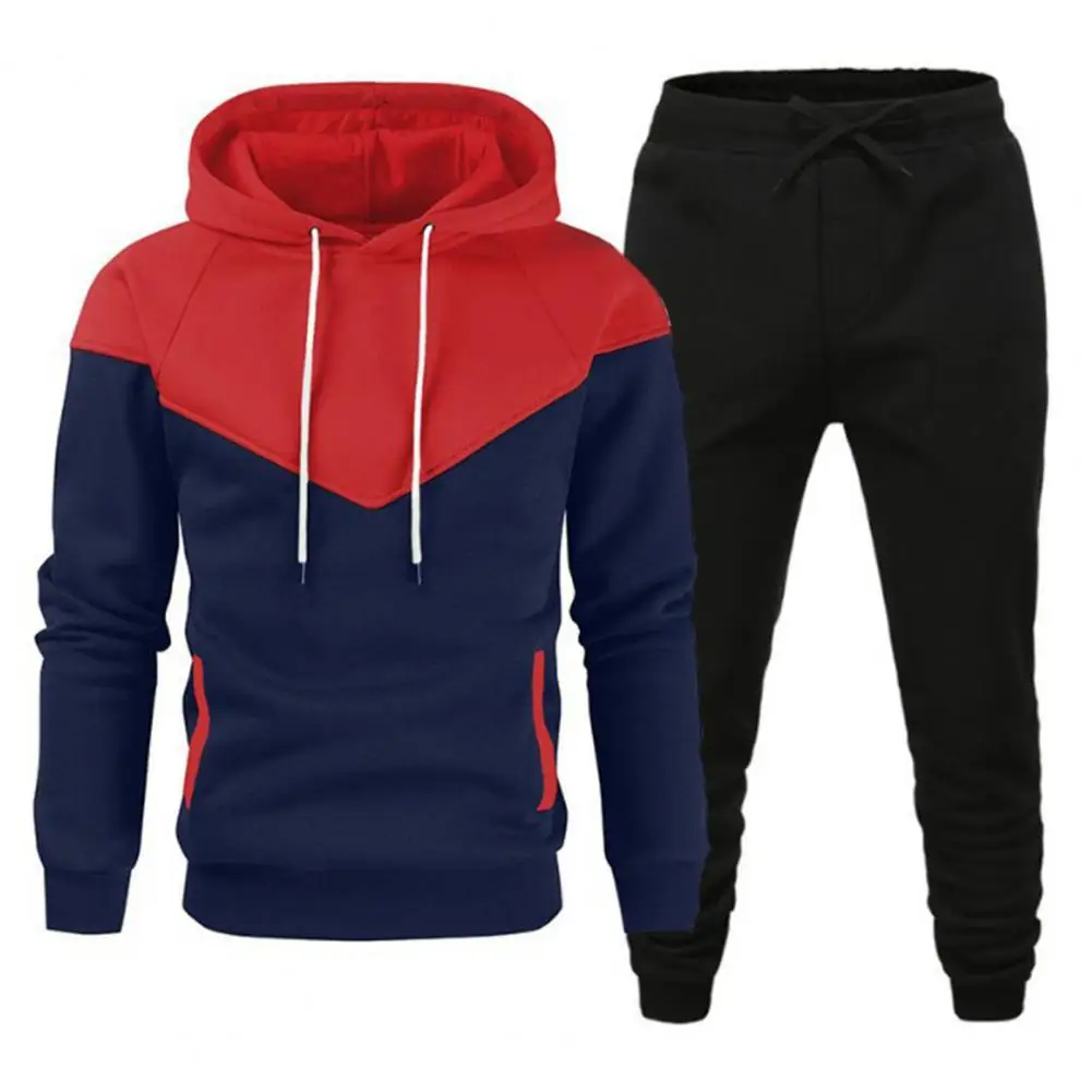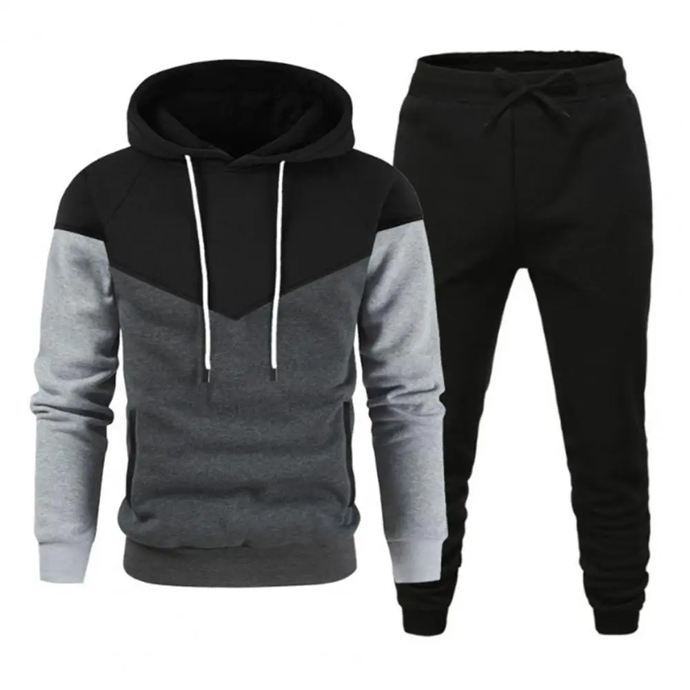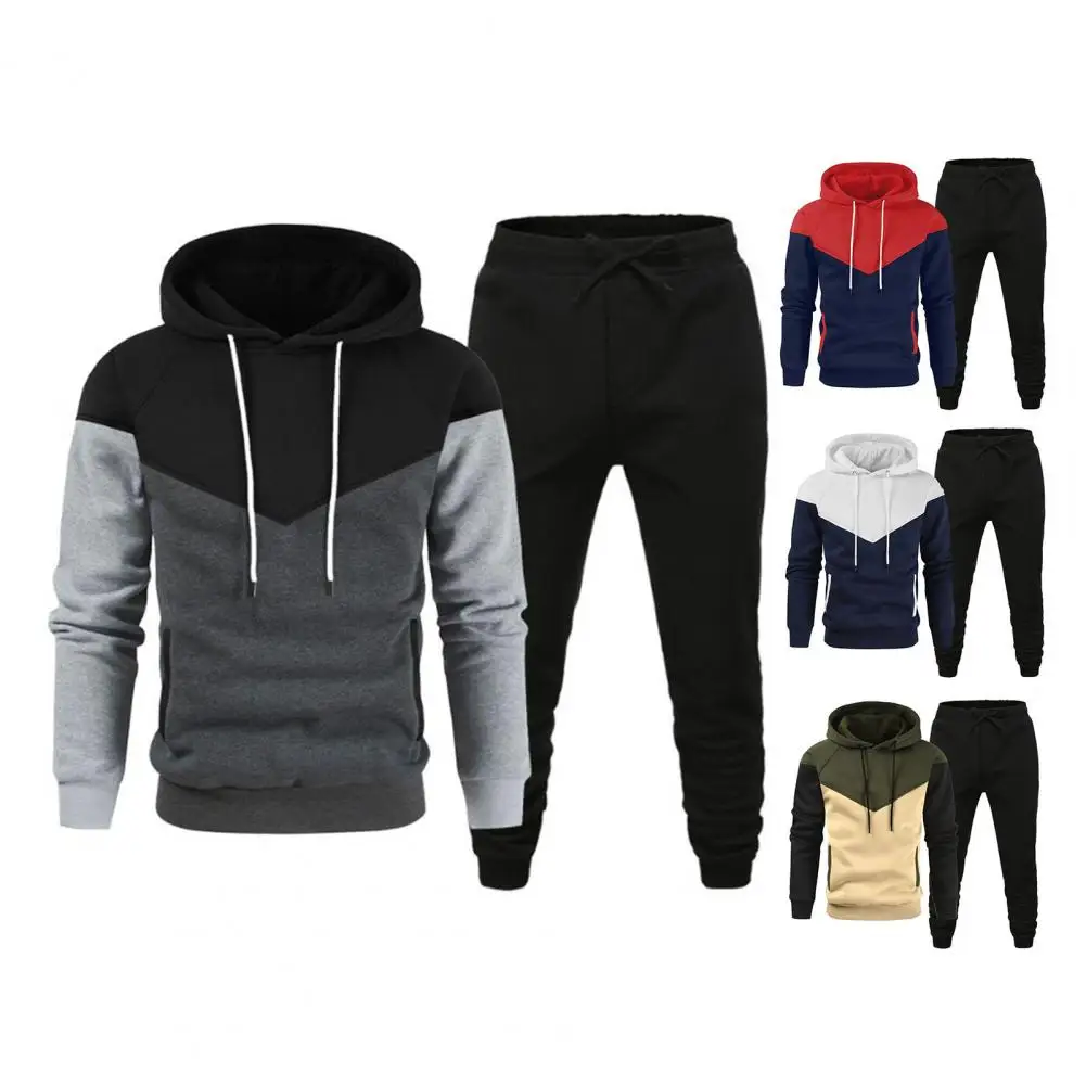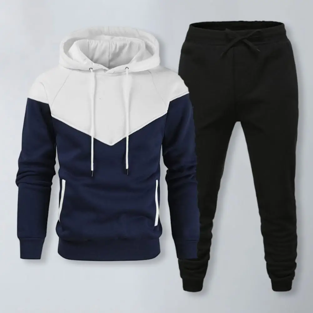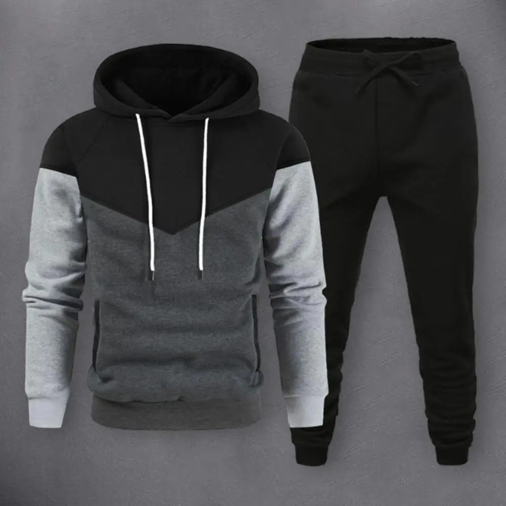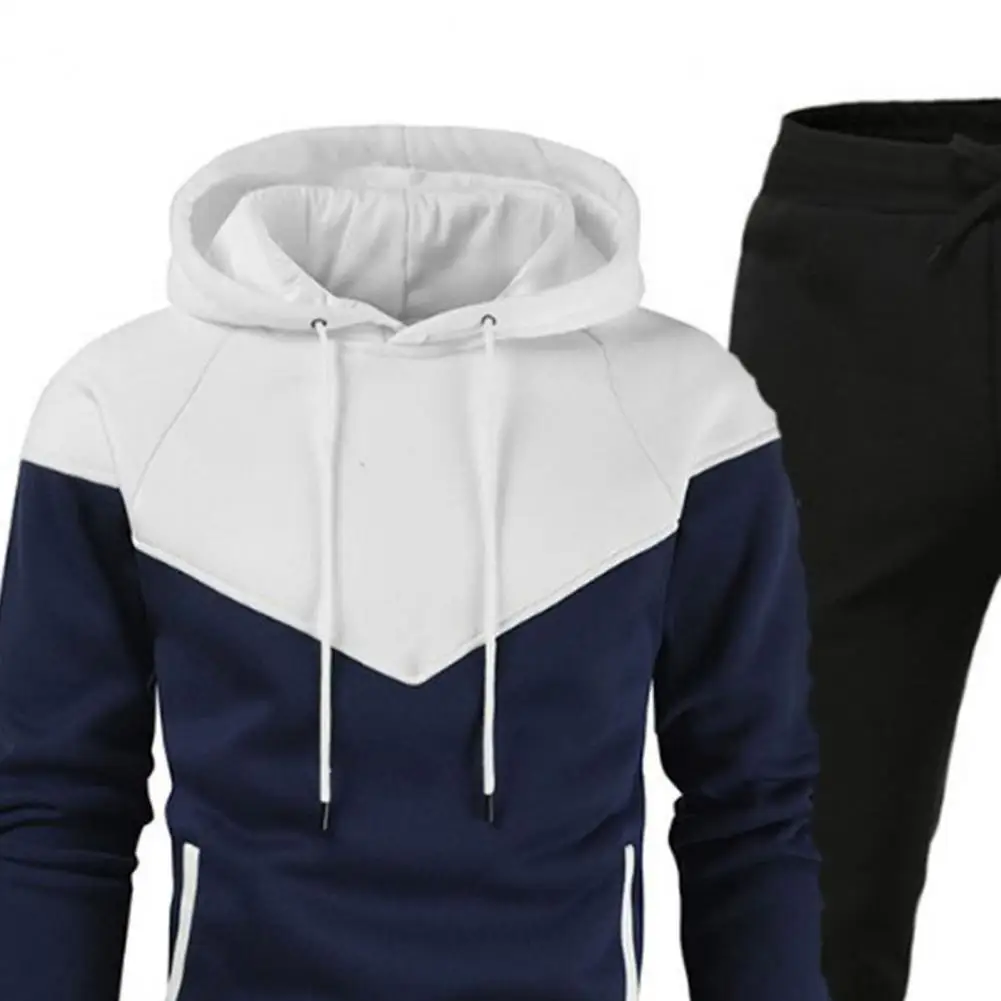 Traje de jogging con bolsillos Color a juego Sudadera con capucha Conjunto de pantalones de chándal Ropa deportiva suave y cálida con bandas de tobillo de cintura elástica 2 para hombres