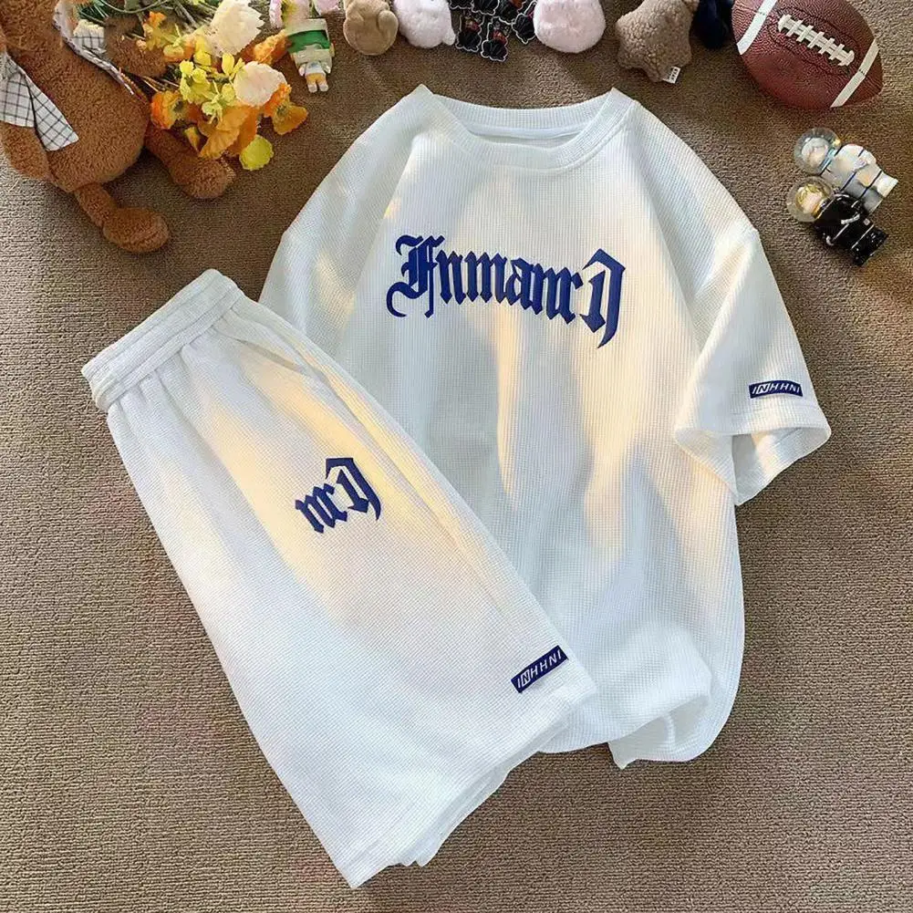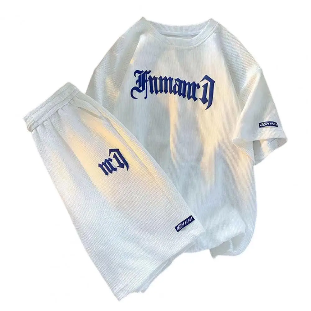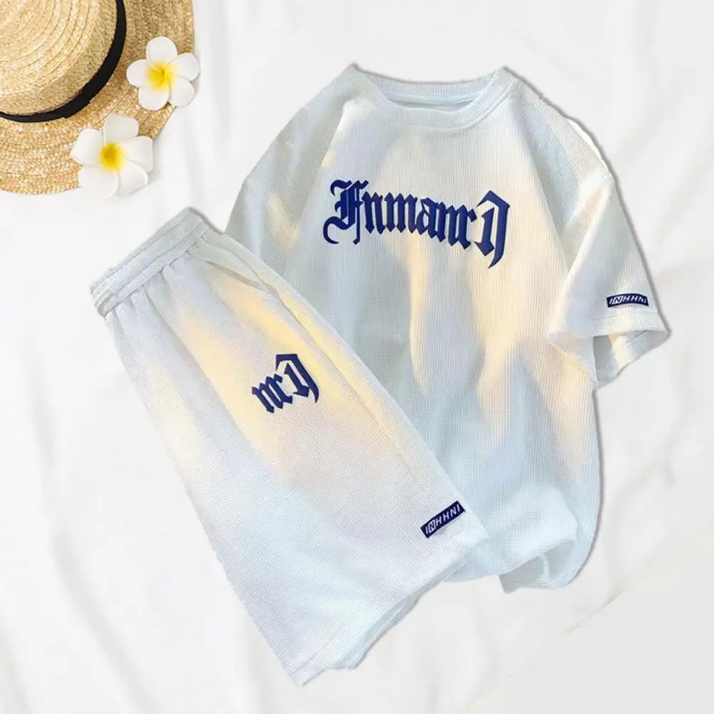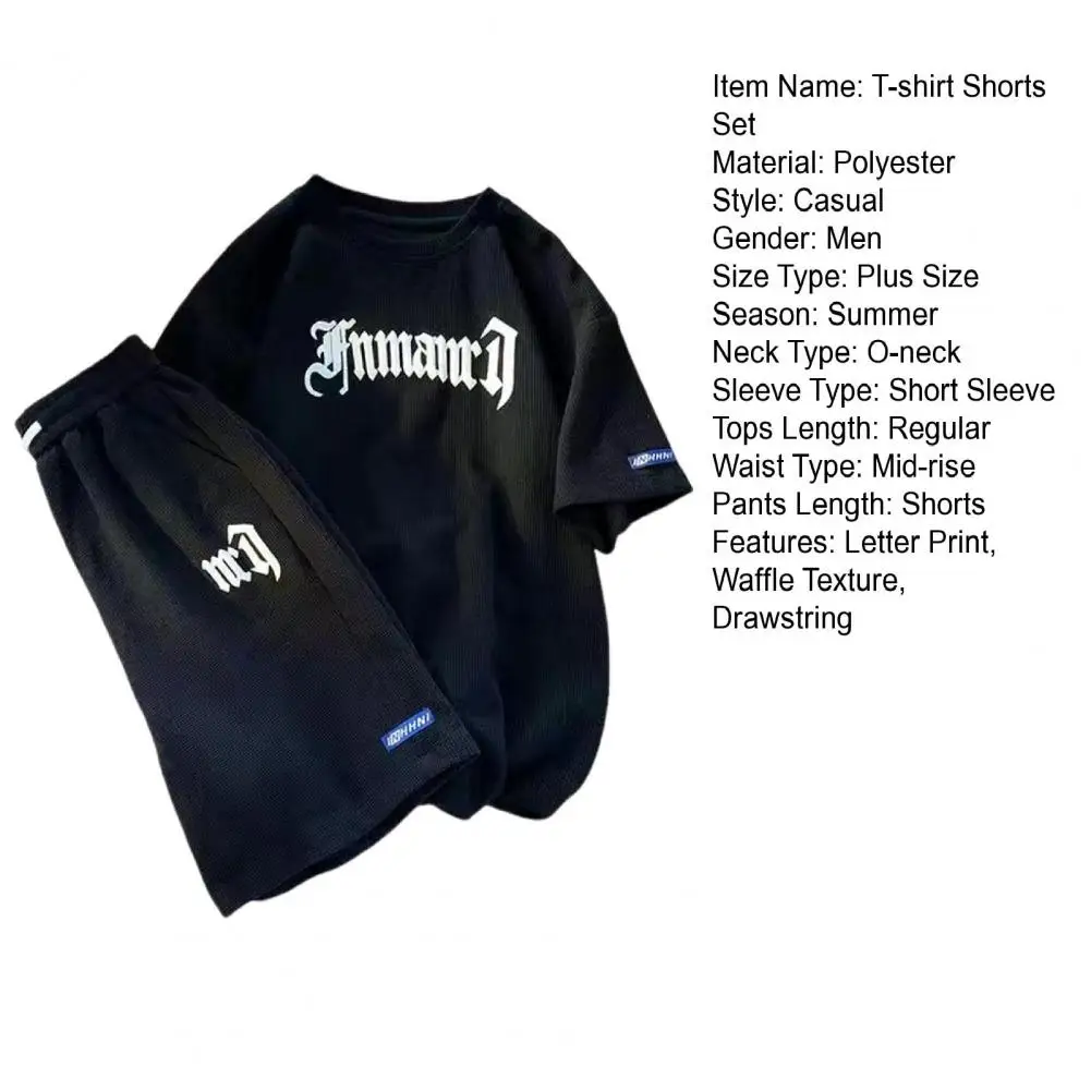 Conjunto de ropa deportiva de verano para hombre con bolsillos, Camiseta con cuello redondo, pantalones cortos de cintura elástica, diseño de estampado de letras para activo
