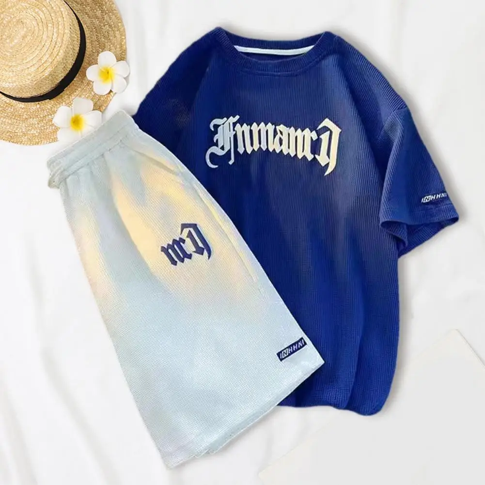 Conjunto de ropa deportiva de verano para hombre con bolsillos, Camiseta con cuello redondo, pantalones cortos de cintura elástica, diseño de estampado de letras para activo