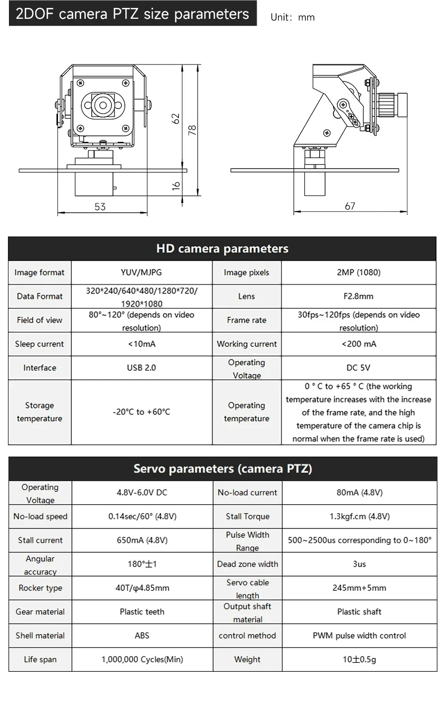 Cámara 2DOF de 2MP, combinada con una aplicación o un mango de control remoto, puede realizar la transmisión de video en tiempo real.