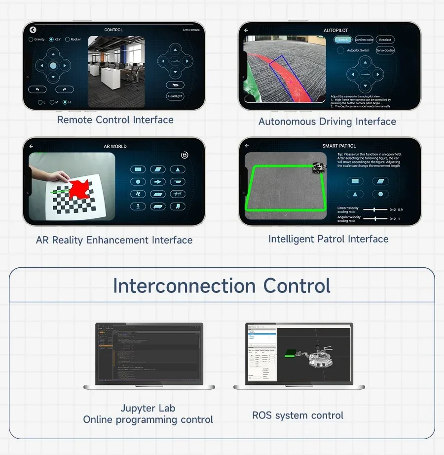 Basado en el sistema operativo ROS, adopte la programación Python, admita Jetson Nano B01 y Raspberry Pi 5.