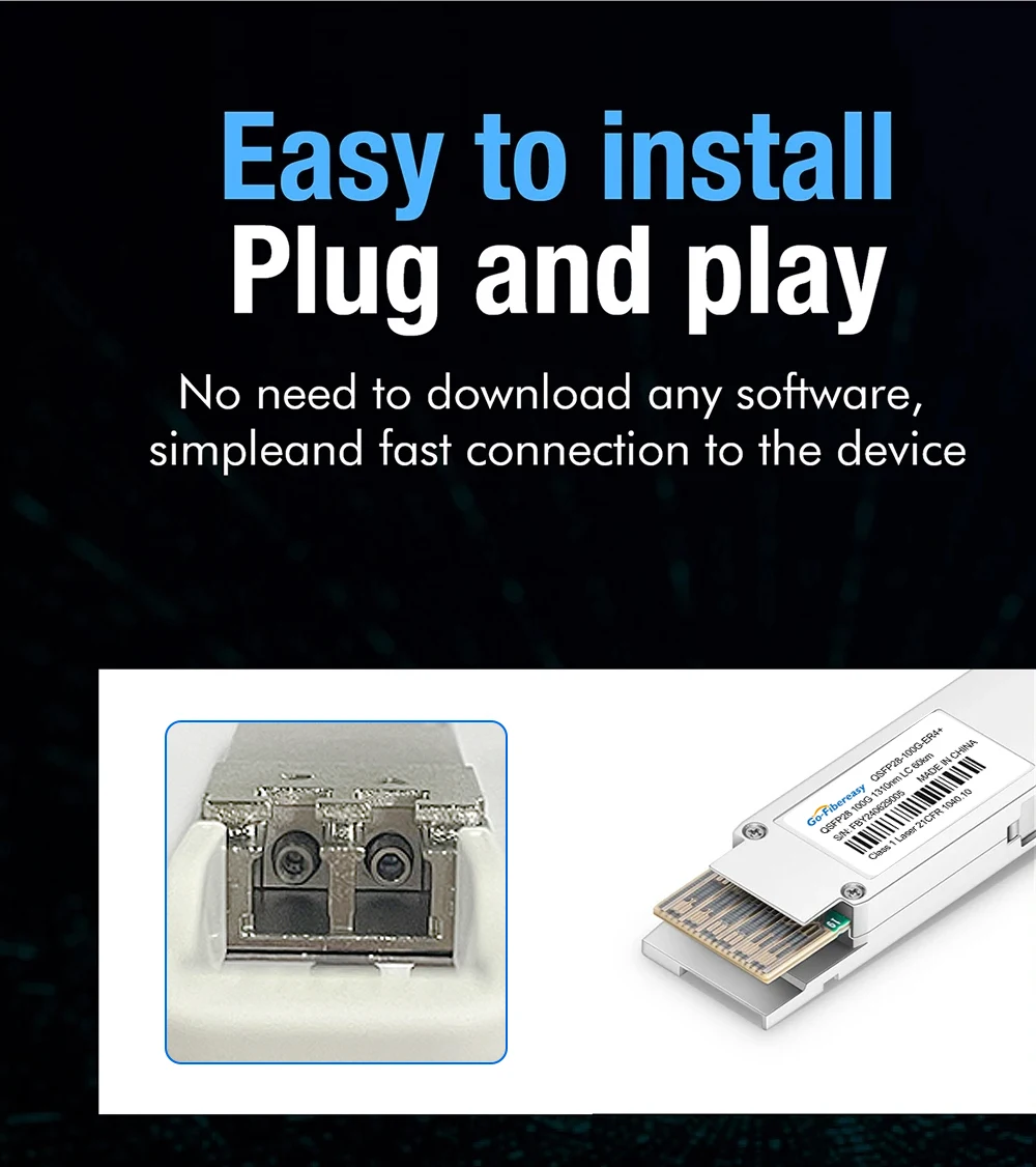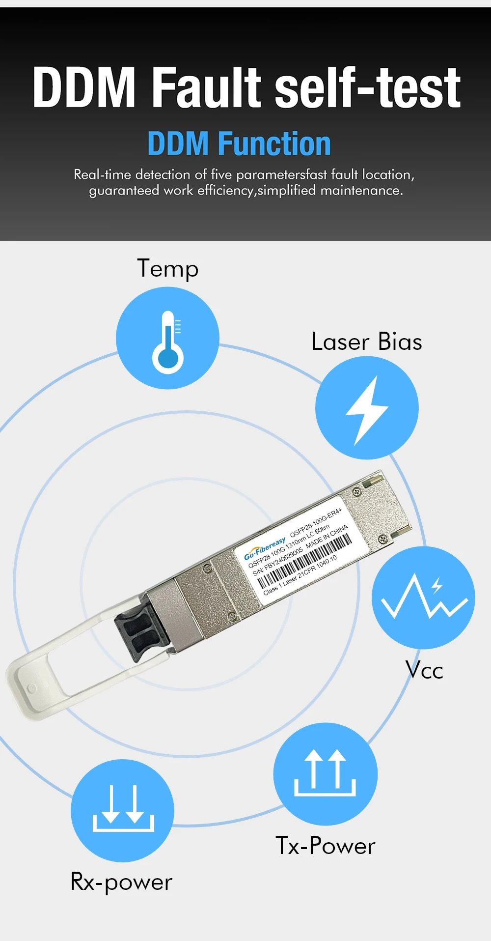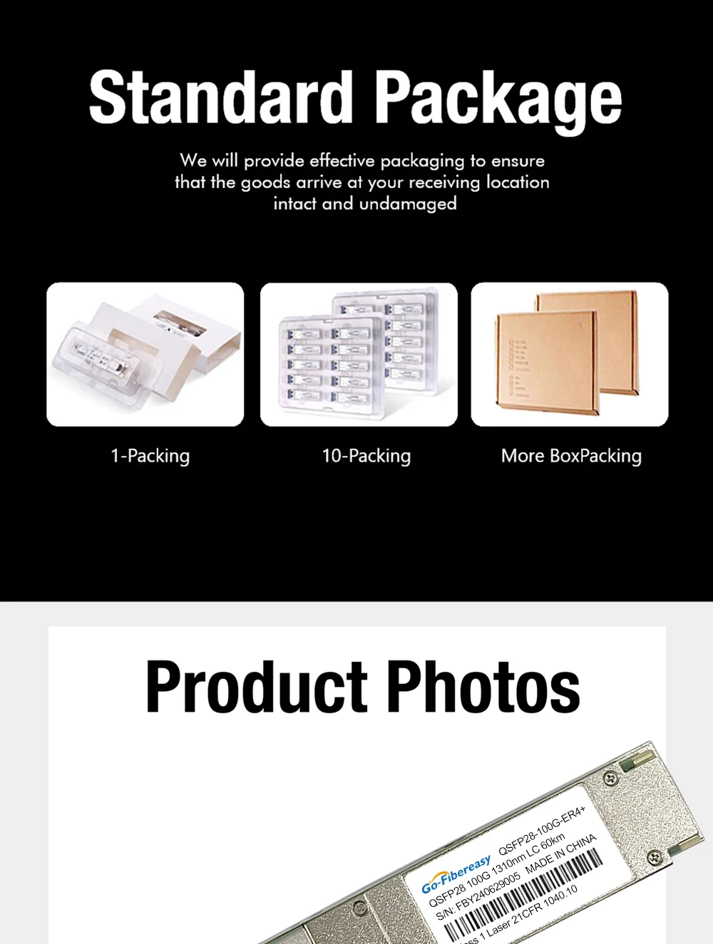 Módulo transceptor QSFP28-100G-ER4-60km QSFP28 100GBASE-ER4+ SMF 1310nm 60km Conector LC/UPC dúplex