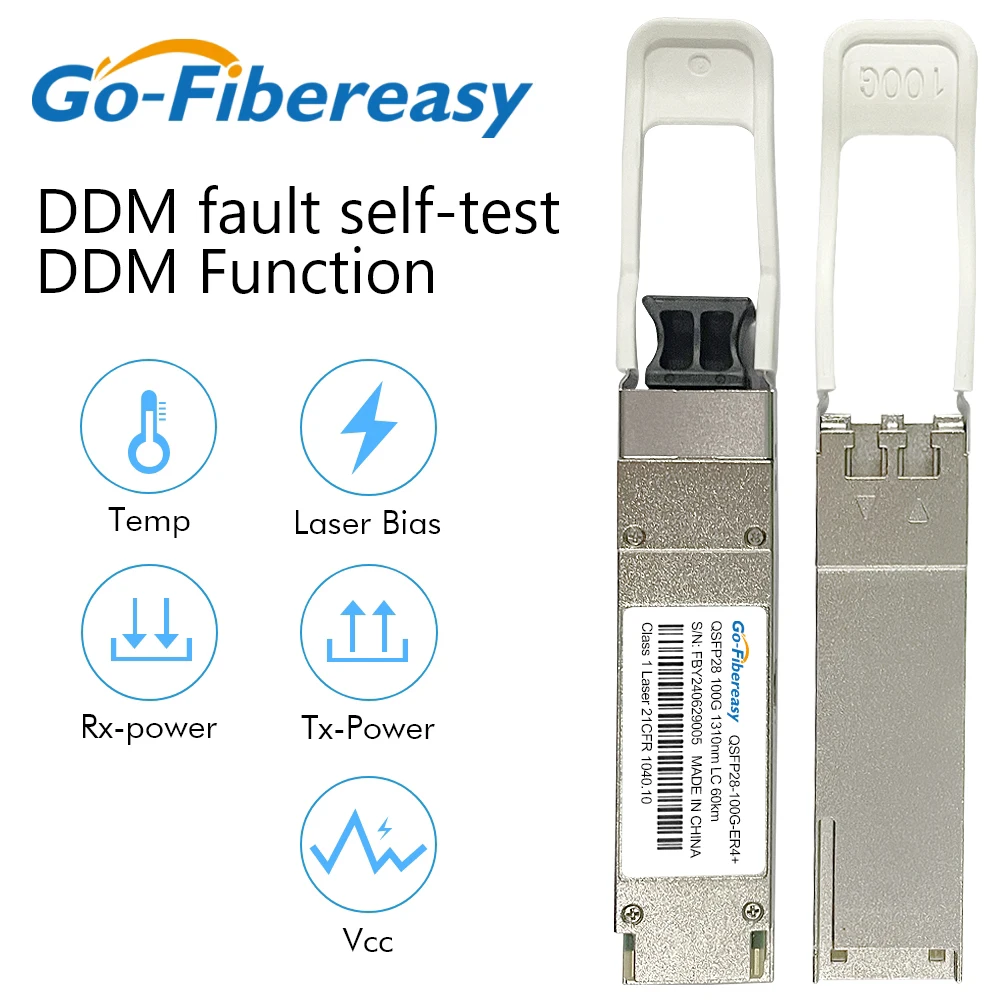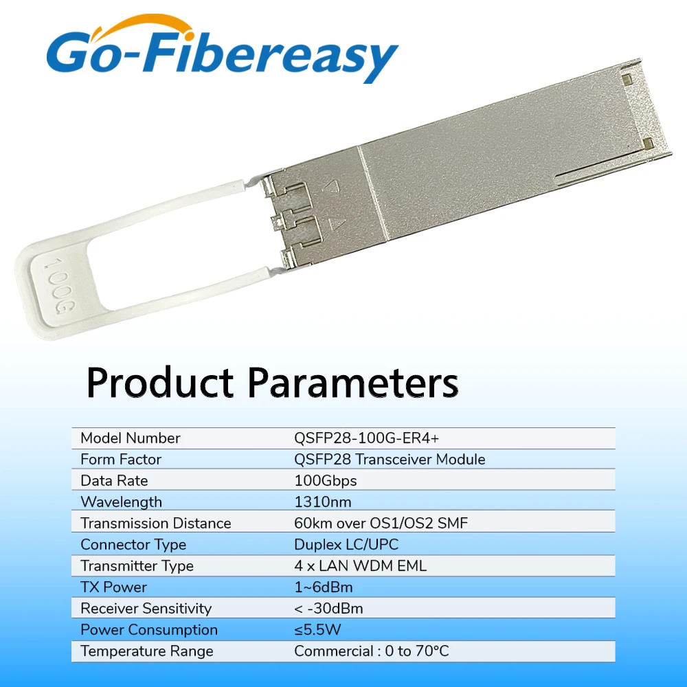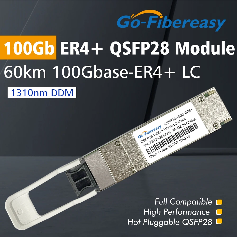 Módulo transceptor QSFP28-100G-ER4-60km QSFP28 100GBASE-ER4+ SMF 1310nm 60km Conector LC/UPC dúplex