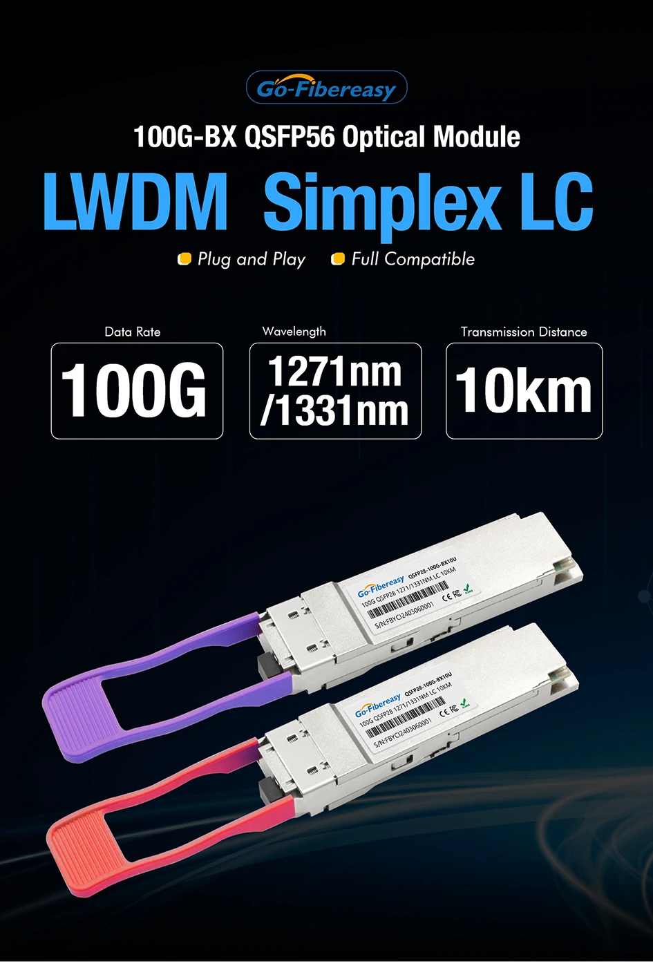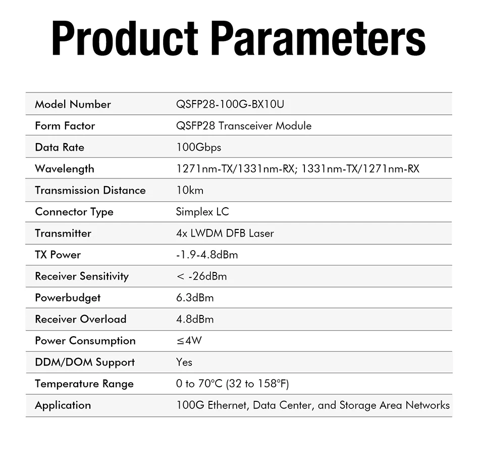 Comprar Transceptor 100Gb BiDi QSFP28 100Gbase-BX10-U/D Tx1271/Rx1331nm 10km\20km\40km QSFP LC único para Cisco/Mellanox... Interruptor de fibra