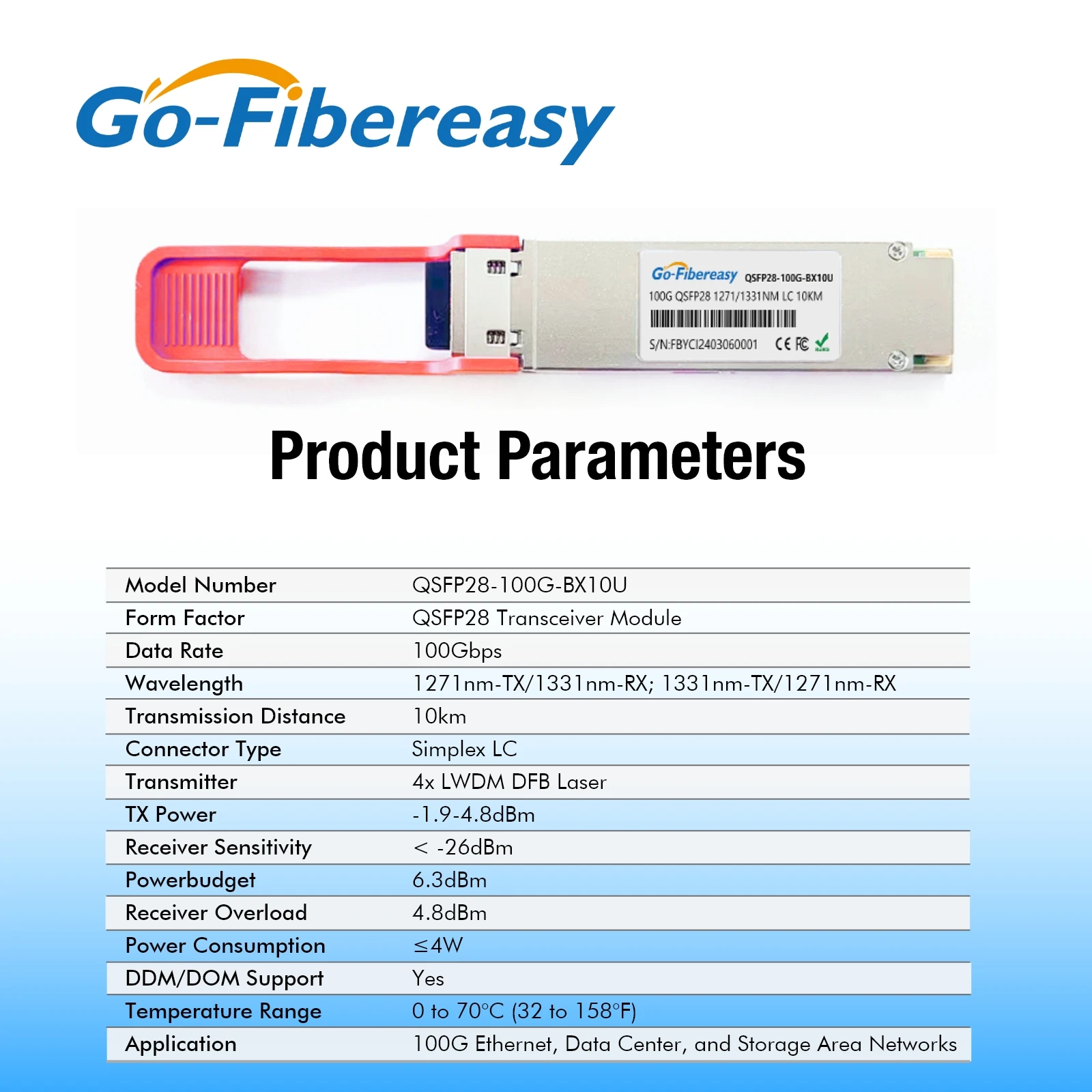 Comprar Transceptor 100Gb BiDi QSFP28 100Gbase-BX10-U/D Tx1271/Rx1331nm 10km\20km\40km QSFP LC único para Cisco/Mellanox... Interruptor de fibra