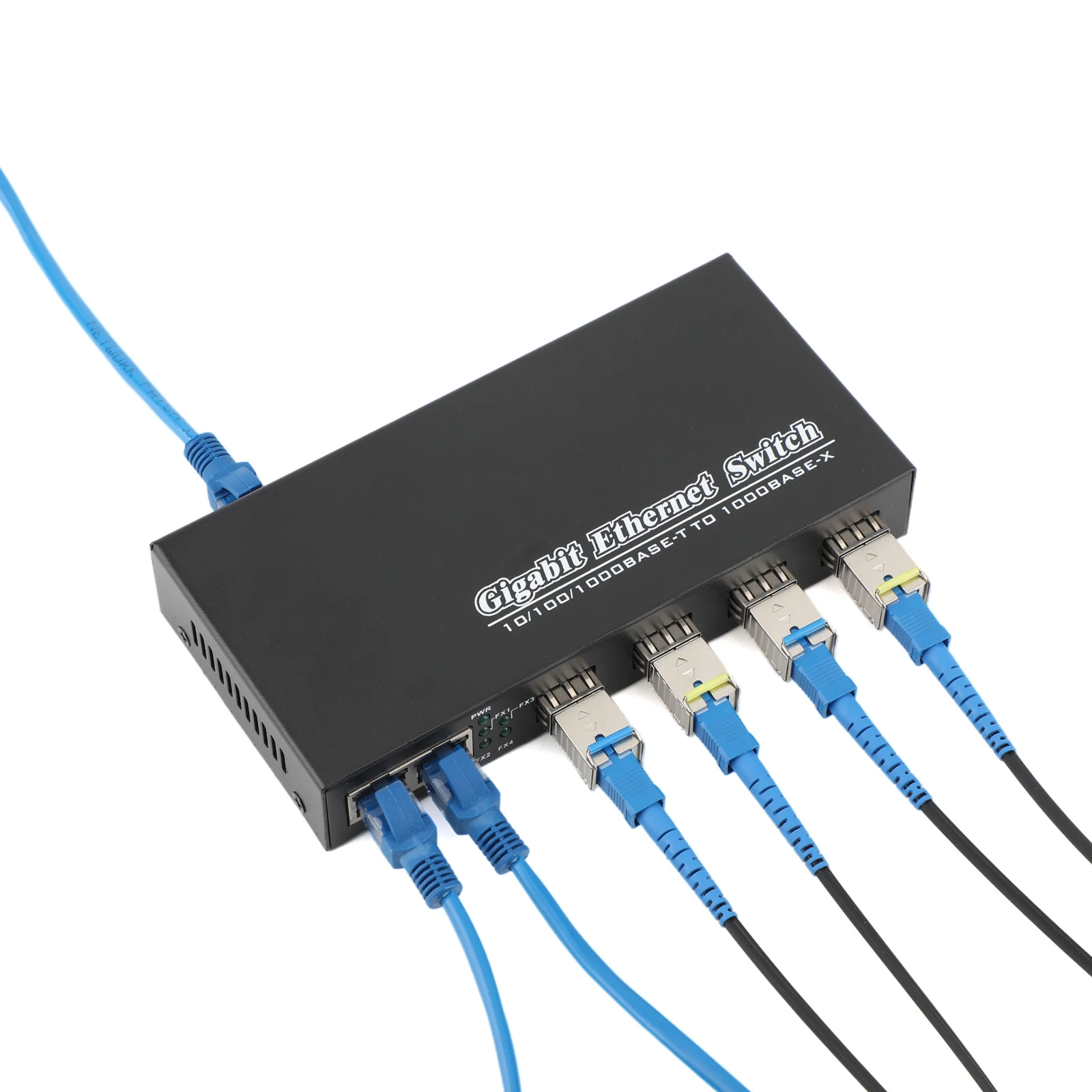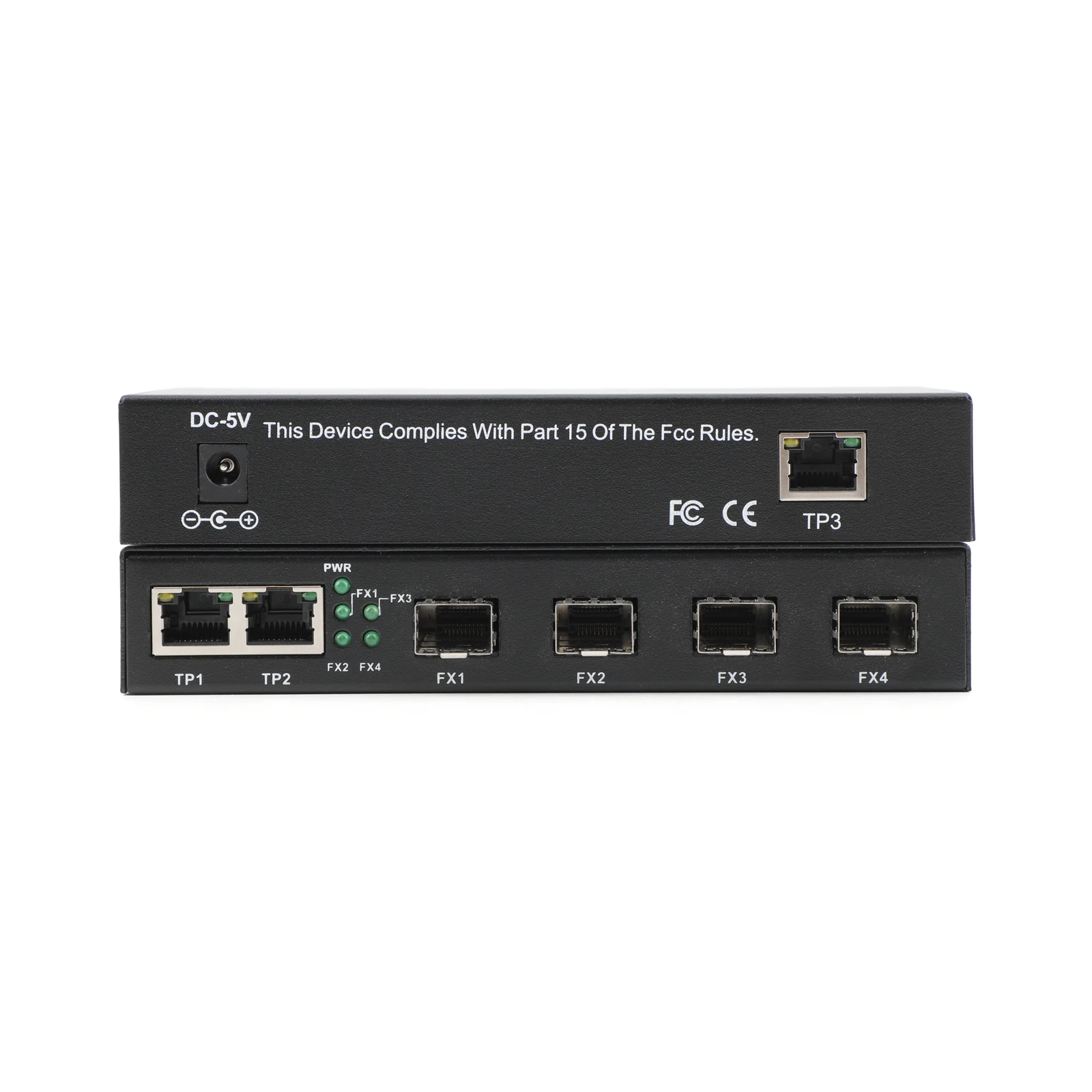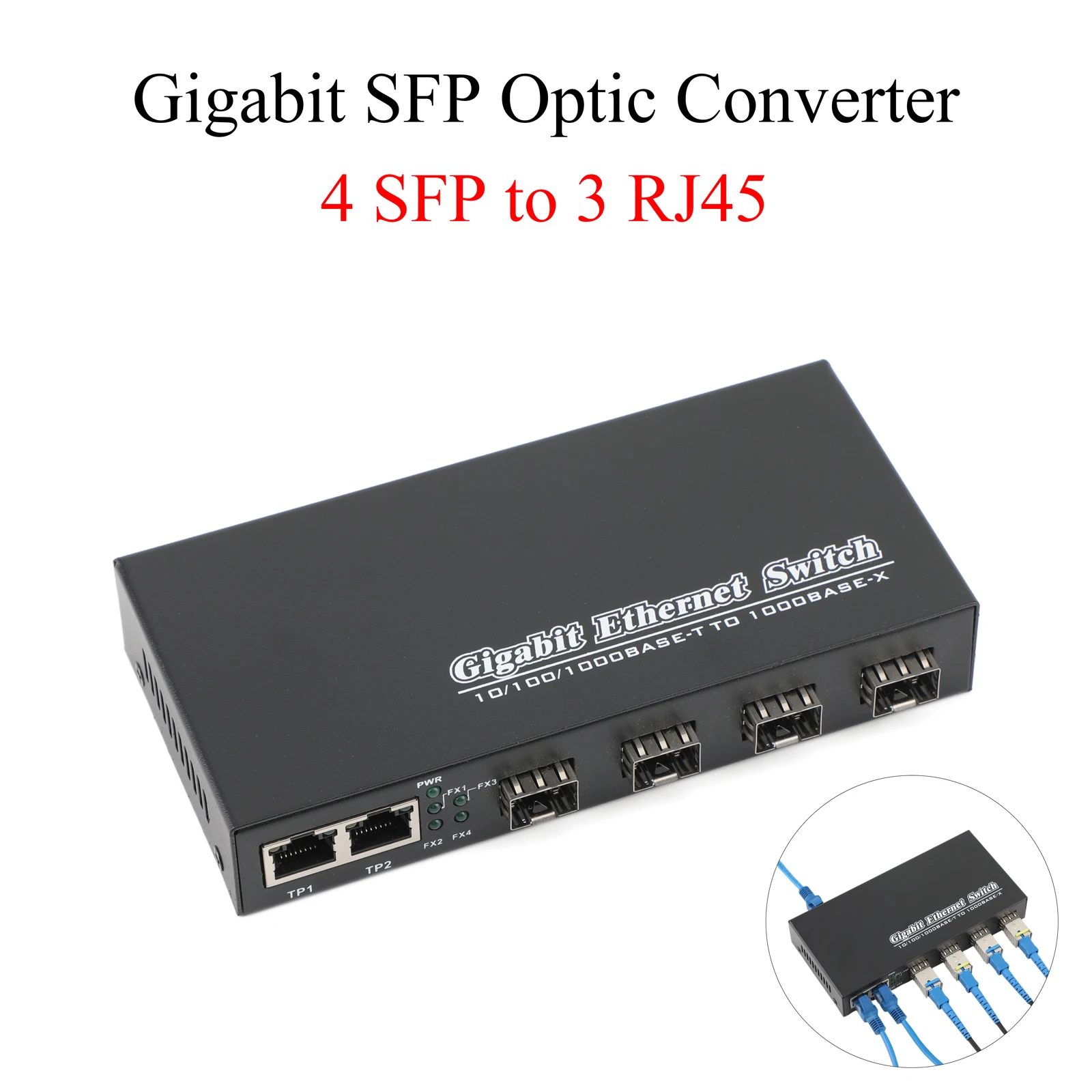Comprar Transceptor 4 SFP a 3 RJ45, 1 Uds., convertidor de medios Gigabit SFP, interruptor de fibra óptica de 10/100/1000M con módulo SC SFP de 3KM/20KM