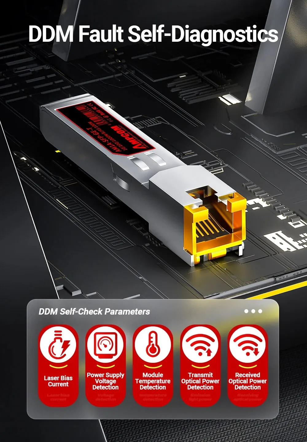 Comprar Transceptor AMPCOM 1.25G SFP-T a RJ45 SFP, módulo SFP Ethernet de cobre 1000BASE-T para Cisco Mikrotik Fortinet Netgear y más