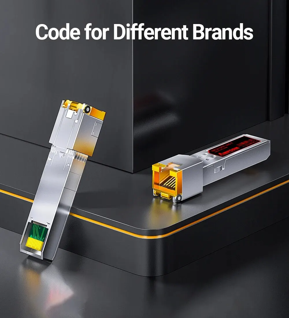 R: Tenga en cuenta que estos transceptores SFP-T 1,25G son con código compatible universal y tienen una amplia compatibilidad-para Cisco, Cisco Meraki, Ubiquiti, Fortinet, D-Link, Supermicro, TP-Link, TL-SM331T Broadcom, Linksys, TP-Link y otros interruptores abiertos.