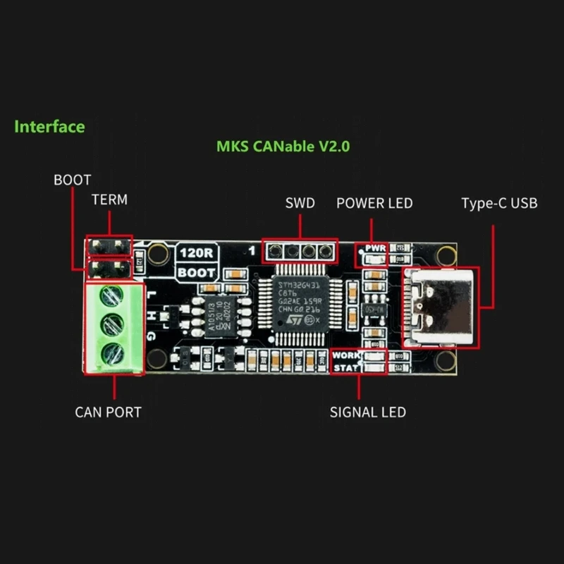 Análisis de alto rendimiento: CANable 2,0 es un potente analizador CAN, que puede convertir datos de bus CAN en interfaces PCAN a través de USB, proporcionando Adquisición y análisis de datos CAN precisos y de alta velocidad.