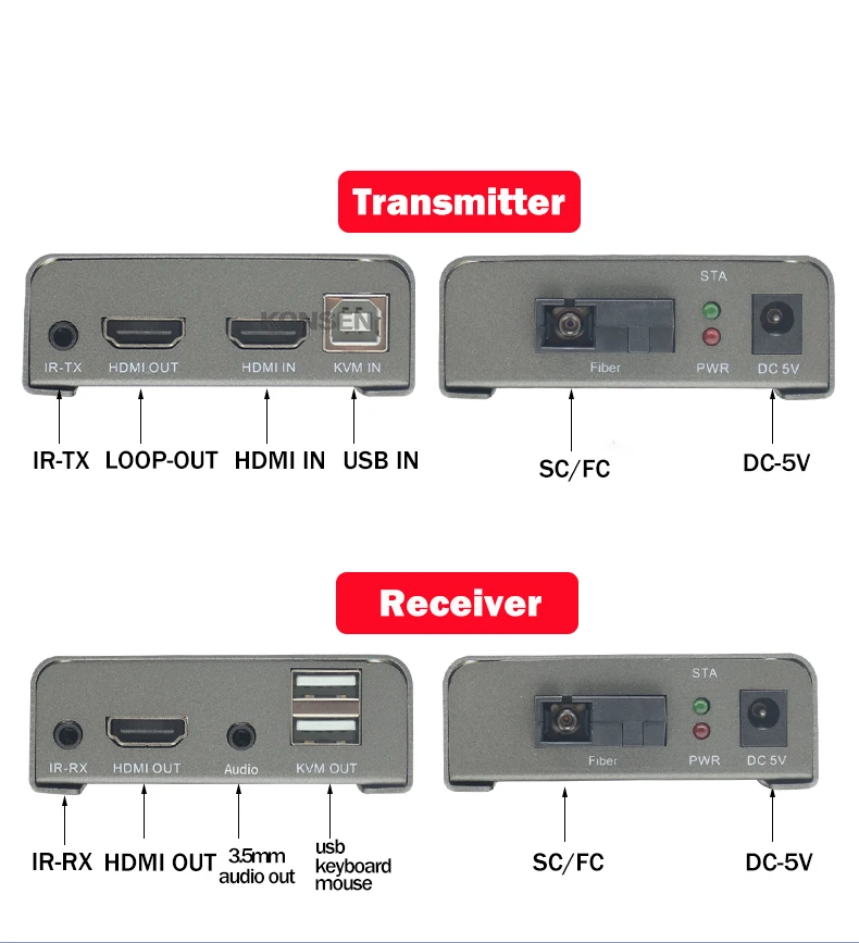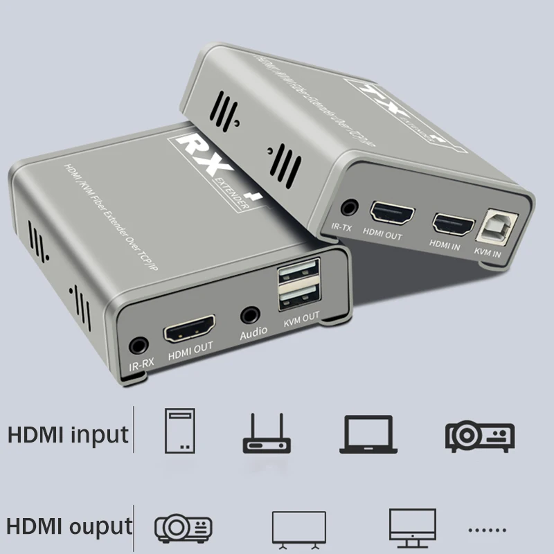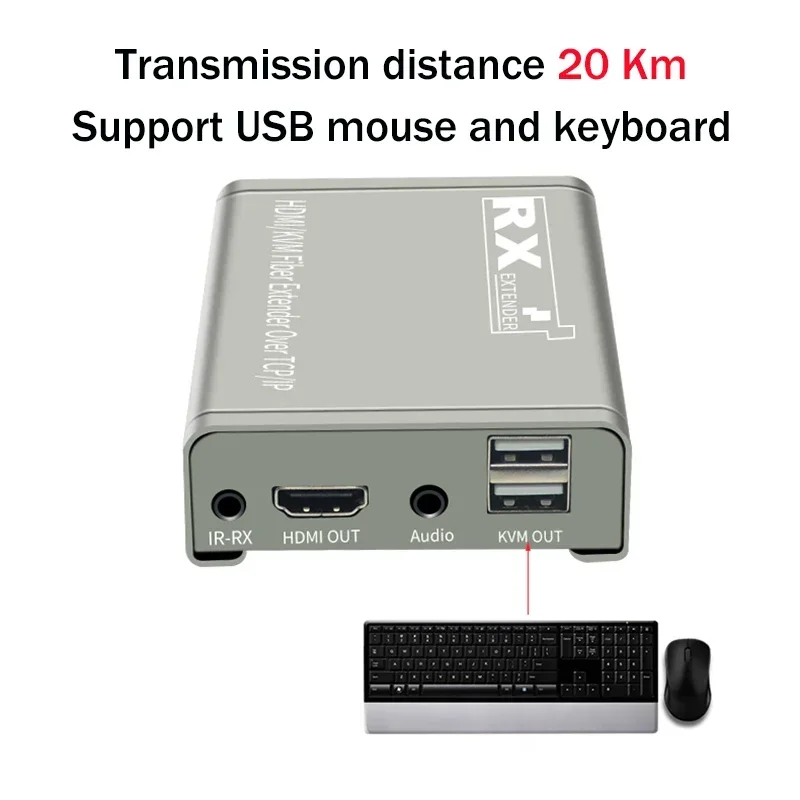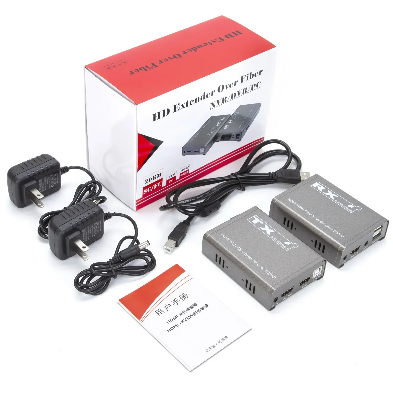 Comprar Transceptor extensor de fibra HDMI KVM de 20Km, extensor USB HDMI sobre Cable de fibra óptica SC, convertidor transmisor de vídeo HDMI a fibra