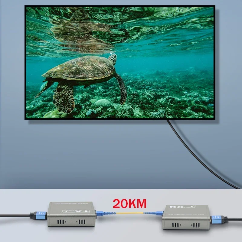 Transmite señales de audio y vídeo HD hasta 20km a través de una sola fibra