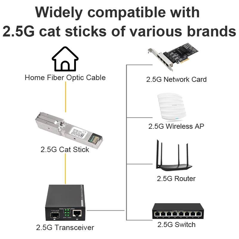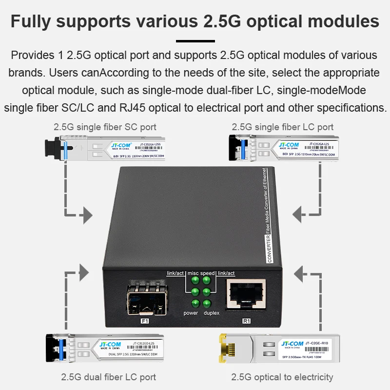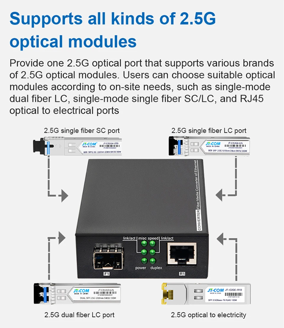 Comprar Transceptor de fibra óptica 2,5G, Puerto LC/SC, convertidor fotoeléctrico 2,5G, Puerto RJ45, convertidor Ethernet 100/1000M/2500M