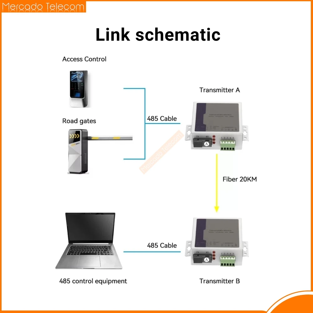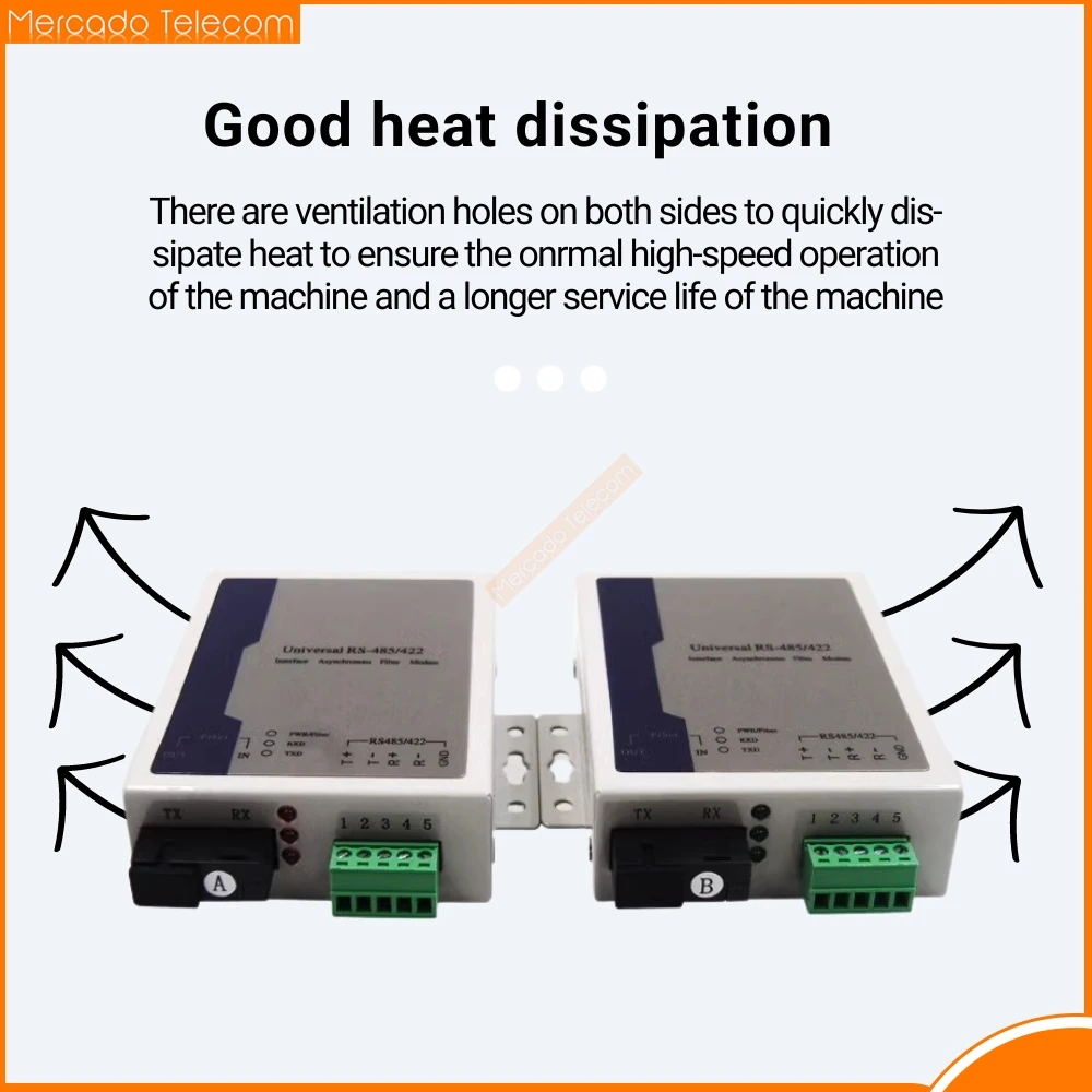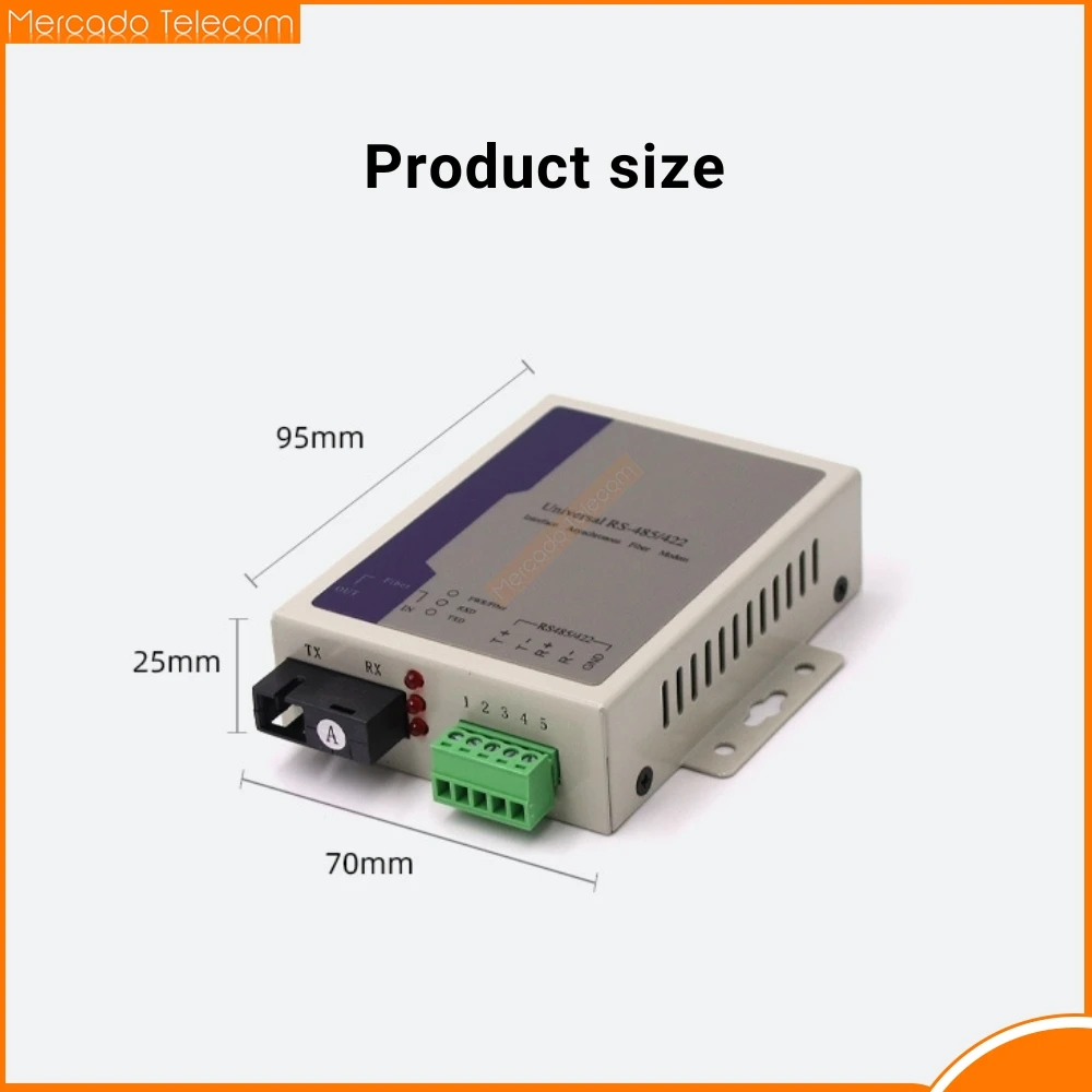 8. Aplicaciones: Control de automatización industrial, control de acceso, tarjeta, estacionamiento y otros sistemasSeñal de RS-485T +, T-, GNDT +, T-, GNDR +, R-, T +, T-, GNDSeñal de fibra ópticaENTRADA. SALIDAEstilo DE TRABAJOTrabajando asincrónicamente, peer-to-peerControl de direcciónControl automático de datos y tecnología de control automático para identificar y controlar automáticamente la dirección de transmisión de datosTasa baudios0-500Kbps, detección automática de la velocidad de la señalFibra longitud de onda1310nm/1550mmDistancia de transmisión del puerto eléctricoDistancia de transmisión del puerto eléctricoDistancia de transmisión del puerto ópticoCapacidad de cargaEl PUERTO DE admite 32 nodos (se puede personalizar 128 puntos)Forma de Puerto eléctricoBloque terminal de 5 posiciones