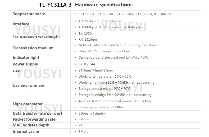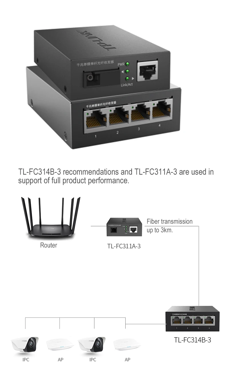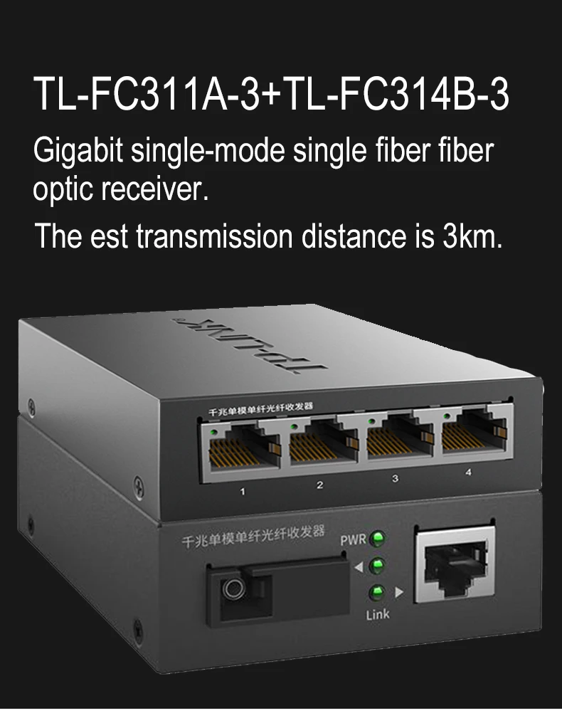 TP-LINK 1000M 1,25Gbps TL-FC311A-3 + TL-FC314B-3 SM Transceptor de fibra Gigabit SC de fibra única Convertidor de medios 3KM