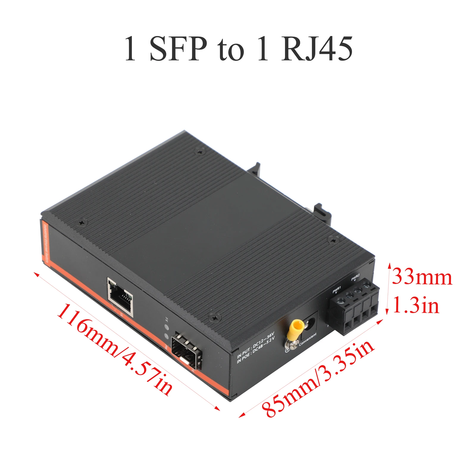 Transceptor industrial Gigabit SFP 1 SFP a 1 RJ45 10/100/1000M Interruptor de fibra óptica 550M/2KM/3KM para automatización industrial