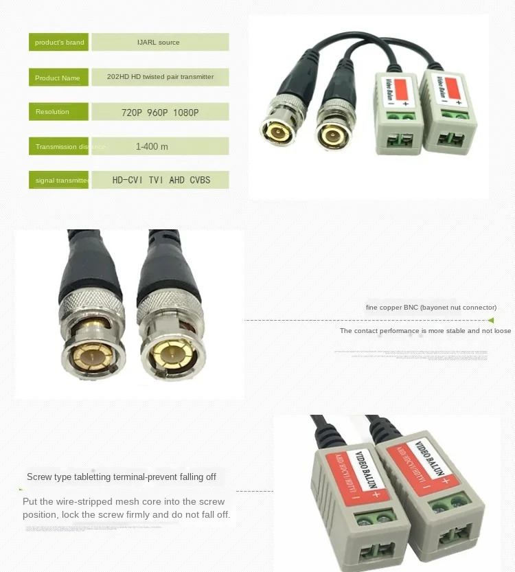 Comprar Transceptor pasivo AHD/CVI/TVI trenzado BNC CCTV, dispositivo de vídeo Balun UTP Balun BNC Cat5 CCTV UTP, Balun de hasta 3000 pies de alcance