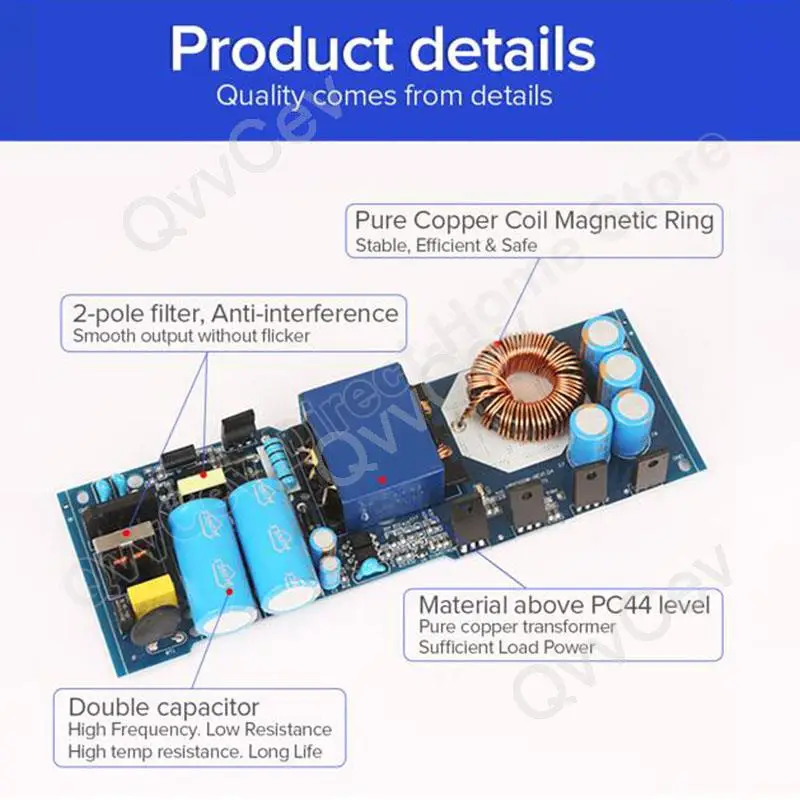 Muy silencioso, sin ruido, salida suave y sin parpadeos, filtro EMI incorporado