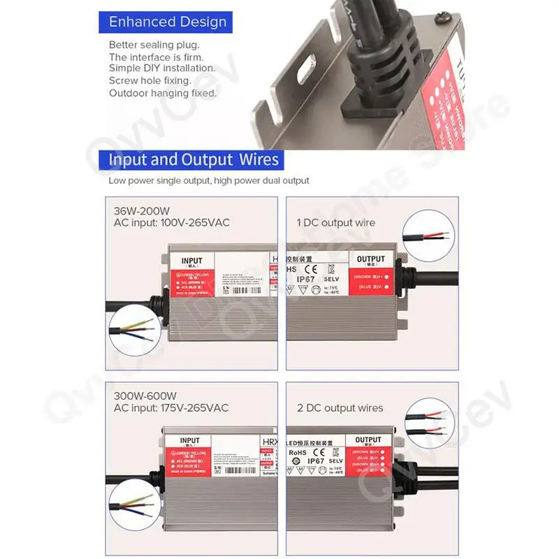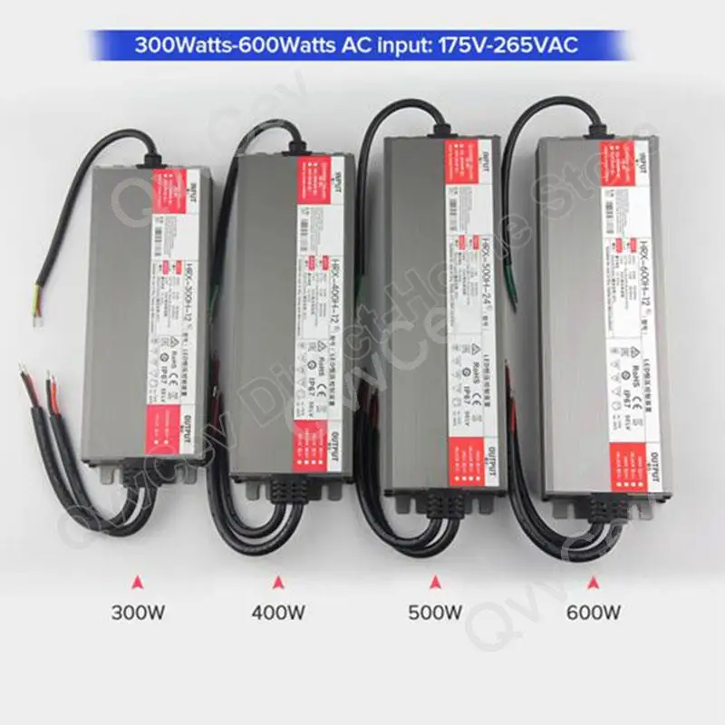 Comprar Transformador de controlador LED conmutada 36W 600W fuente de alimentación DC 12V 24V AC110V-265V 200W AC175V-265V 400W 500W exterior IP67 impermeable