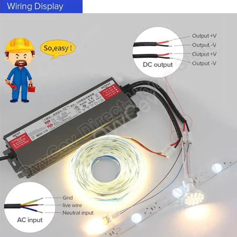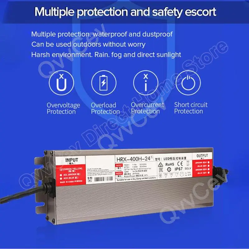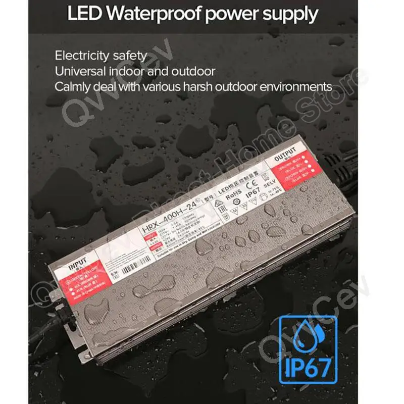 Luces de pared cortina LED, Lámpara de agua, Equipo de monitoreo, Luces de arco iris, Capacidades de pantalla, Foco, Tira de luces LED, Controlador de iluminación LED, Personajes luminosos, Postros de cajas de luz, Lámparas de líneas, Luces LED para vitrinas, etc. Los transformadores LED impermeables de bajo voltaje acompañan su uso seguro de la electricidad.
