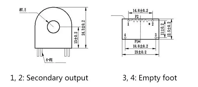 Transformadores ZMCT118A, pequeños, alta precisión, consistencia, para una medición precisa de corriente y potencia.Corriente nominal de entrada: 5ACorriente nominal de salida: 2,5 mARelación: 2000:1Fase (cuando la entrada nominal) :=15(50 ohm)Rango lineal: 0-40A(50 ohm)Linealidad: 0.1%Voltaje de aislamiento: 4500VUso de medición:Para una medición precisa de la corriente y la potencia.Material de sellado: epoxiInstalación: instalación PCBTemperatura de funcionamiento: -40 a + 85 grados