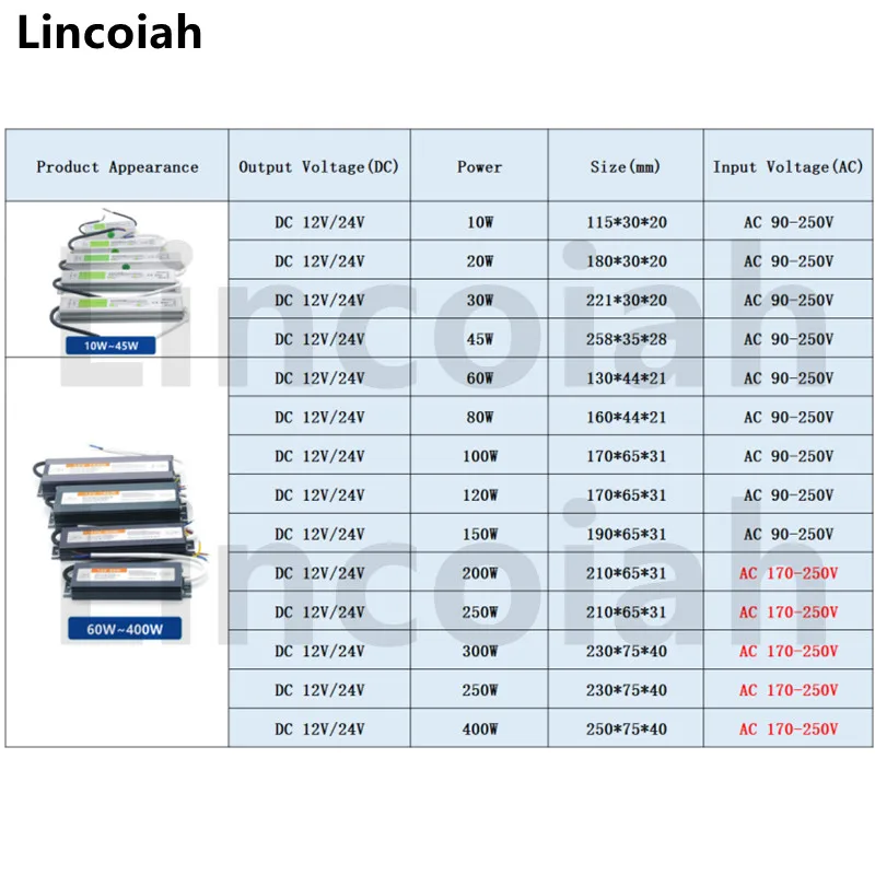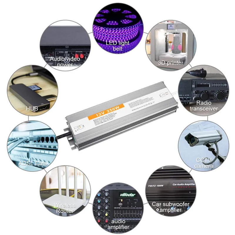 Comprar Transformadores de iluminación a prueba de agua CA 220V a CC 12 V 24V adaptador de corriente del controlador LED 10W 120W 200W 400W fuente de alimentación impermeable de 12V