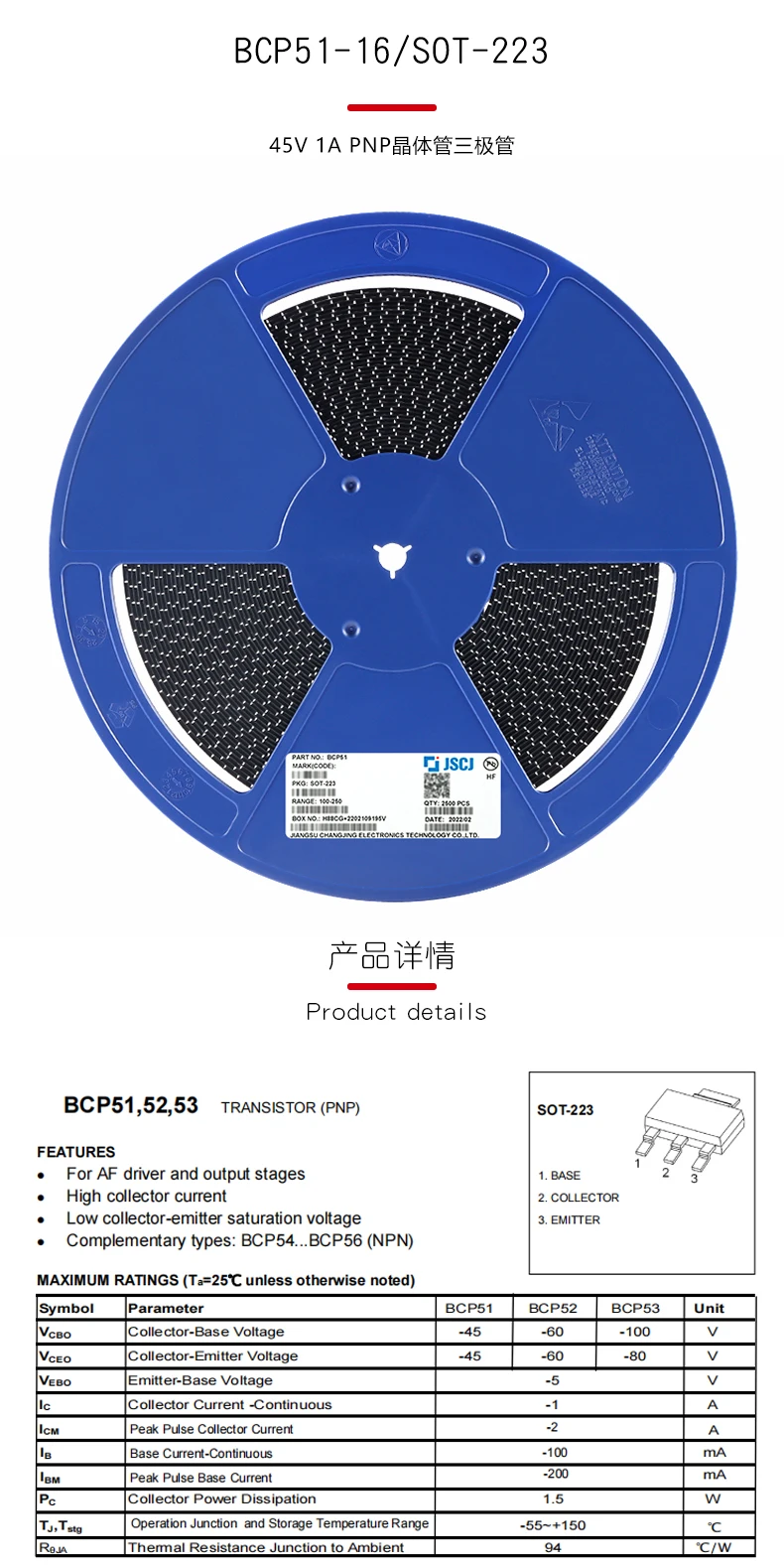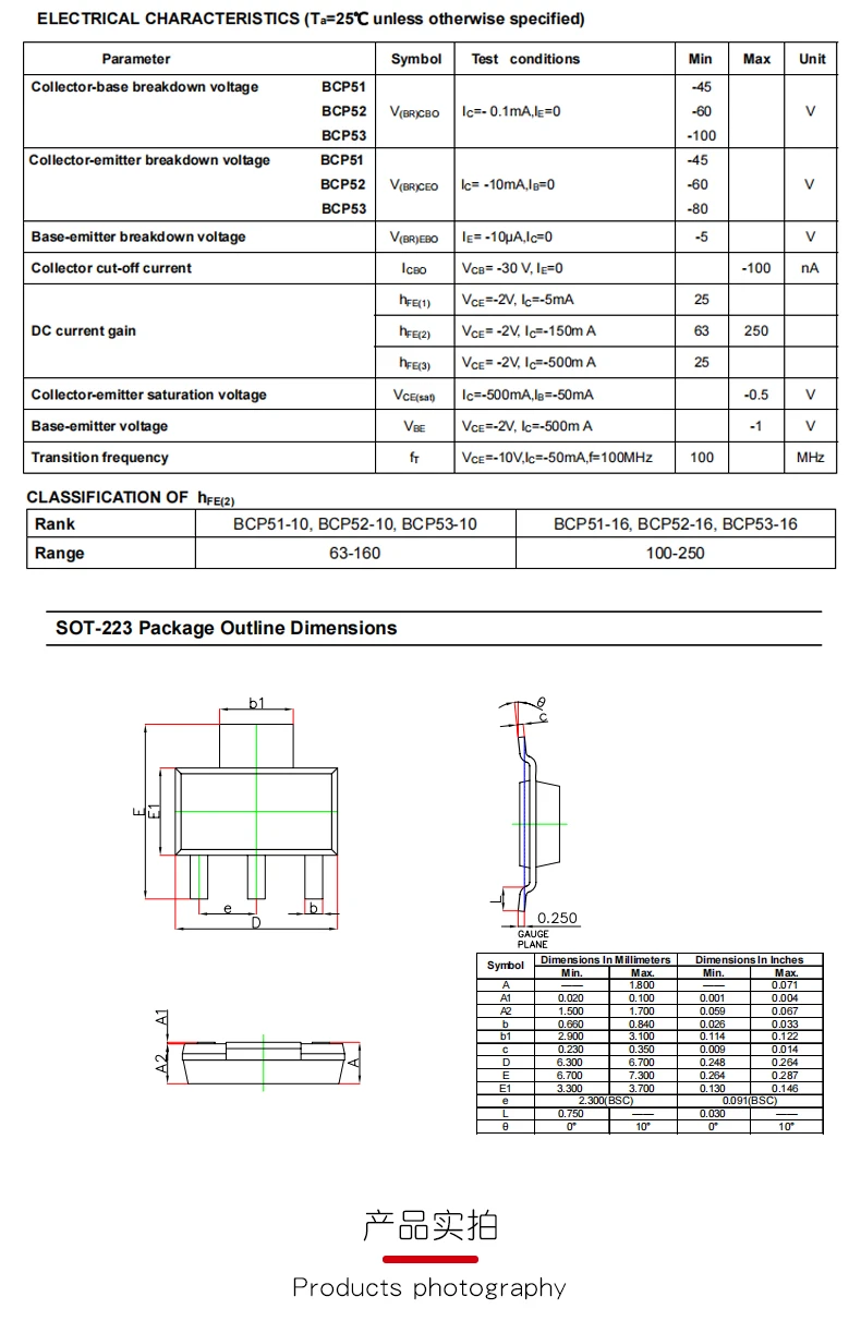 Transistor de potencia de BCP56-16 SMD SOT223, BCP51, BCP52, BCP53, BCP54, BCP55, 10 unidades por lote
