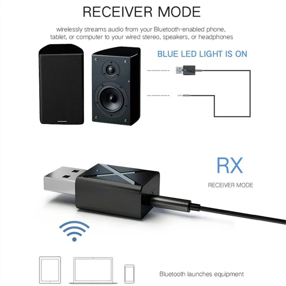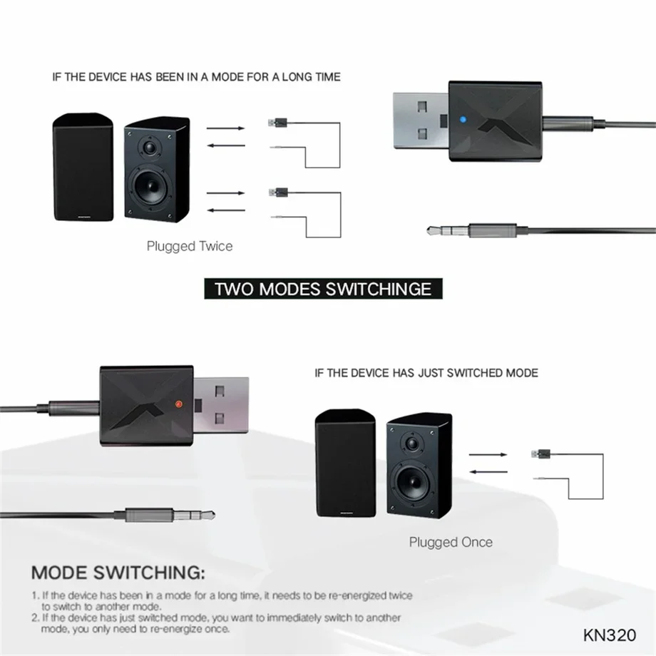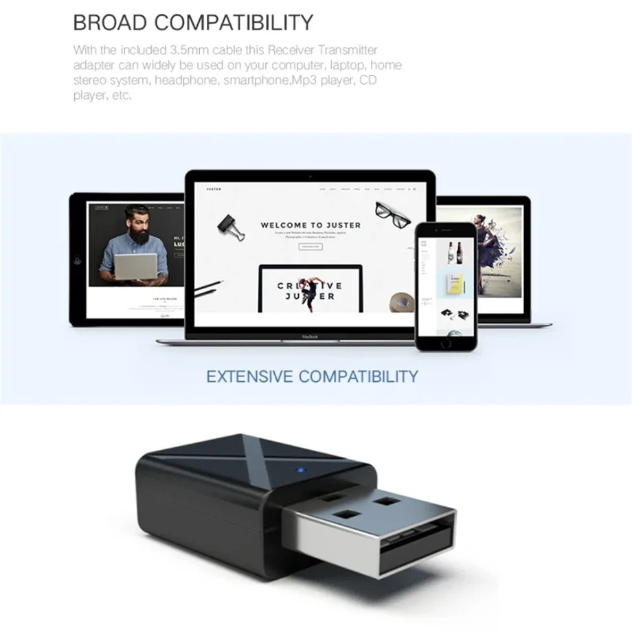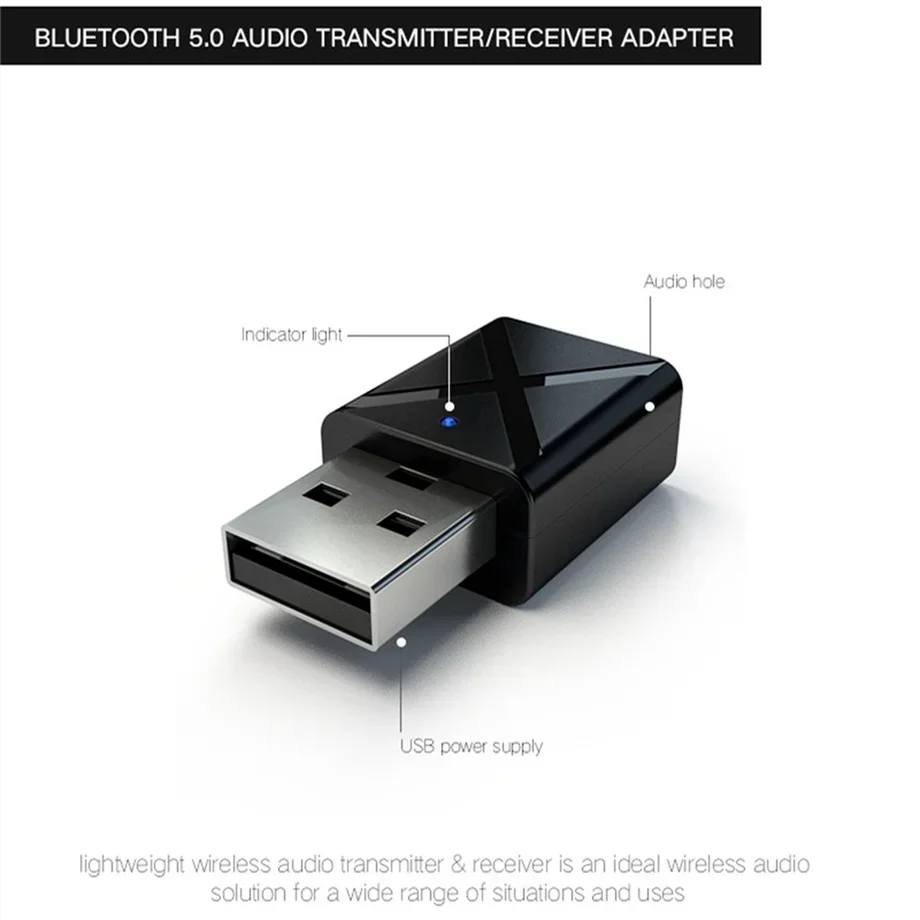 Comprar Transmisor de Audio con Bluetooth 5,0, receptor Mini USB de 3,5mm, conector AUX, adaptador inalámbrico de música estéreo para PC, TV, altavoz de coche