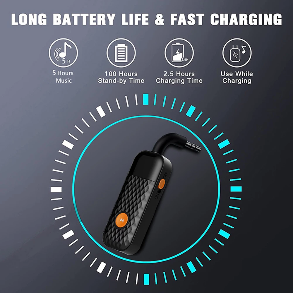4. Batería recargable:Con su batería recargable integrada, este transmisor de audio proporciona hasta 5 horas de uso después de una sola carga completa. La comodidad de esta característica lo hace perfecto para usar en viajes largos o períodos prolongados de escucha sin preocuparse por agotarse la energía.