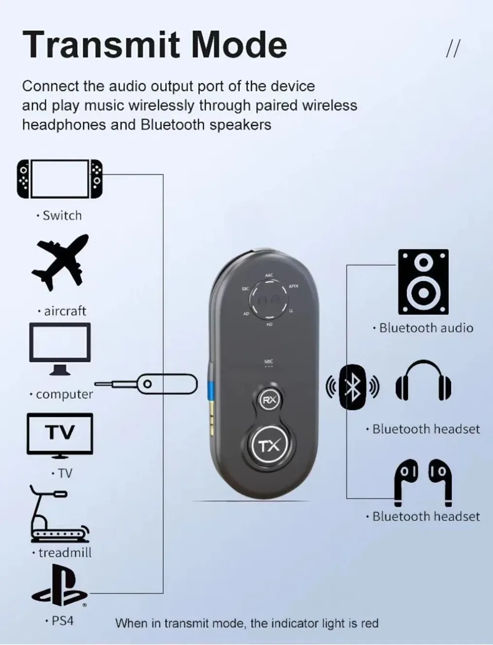 Transmisor Bluetooth 5,4 APTX HD LL adaptador de Audio inalámbrico USB adaptable de baja latencia óptico Coaxial AUX para PS4 PC TV altavoz