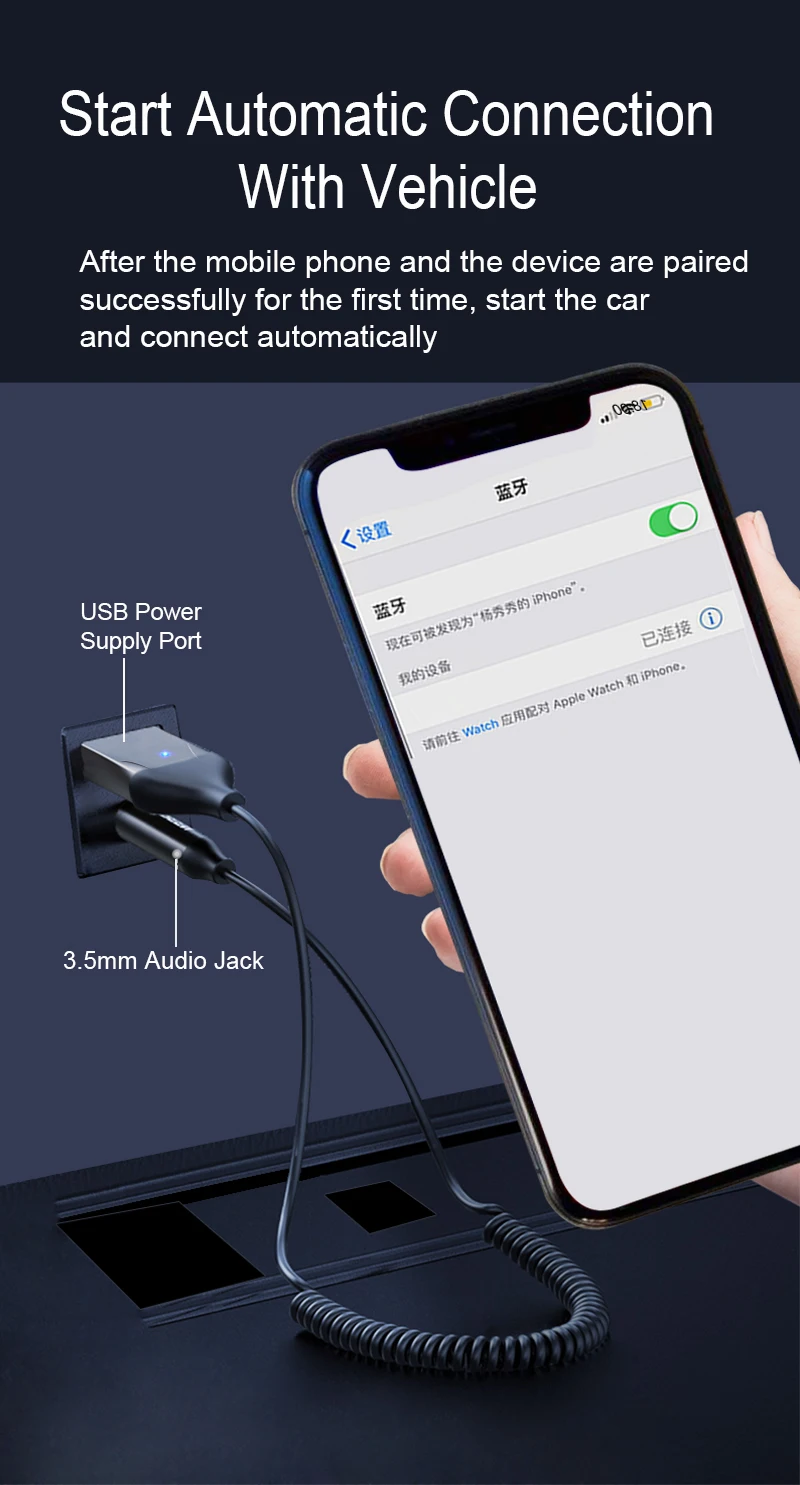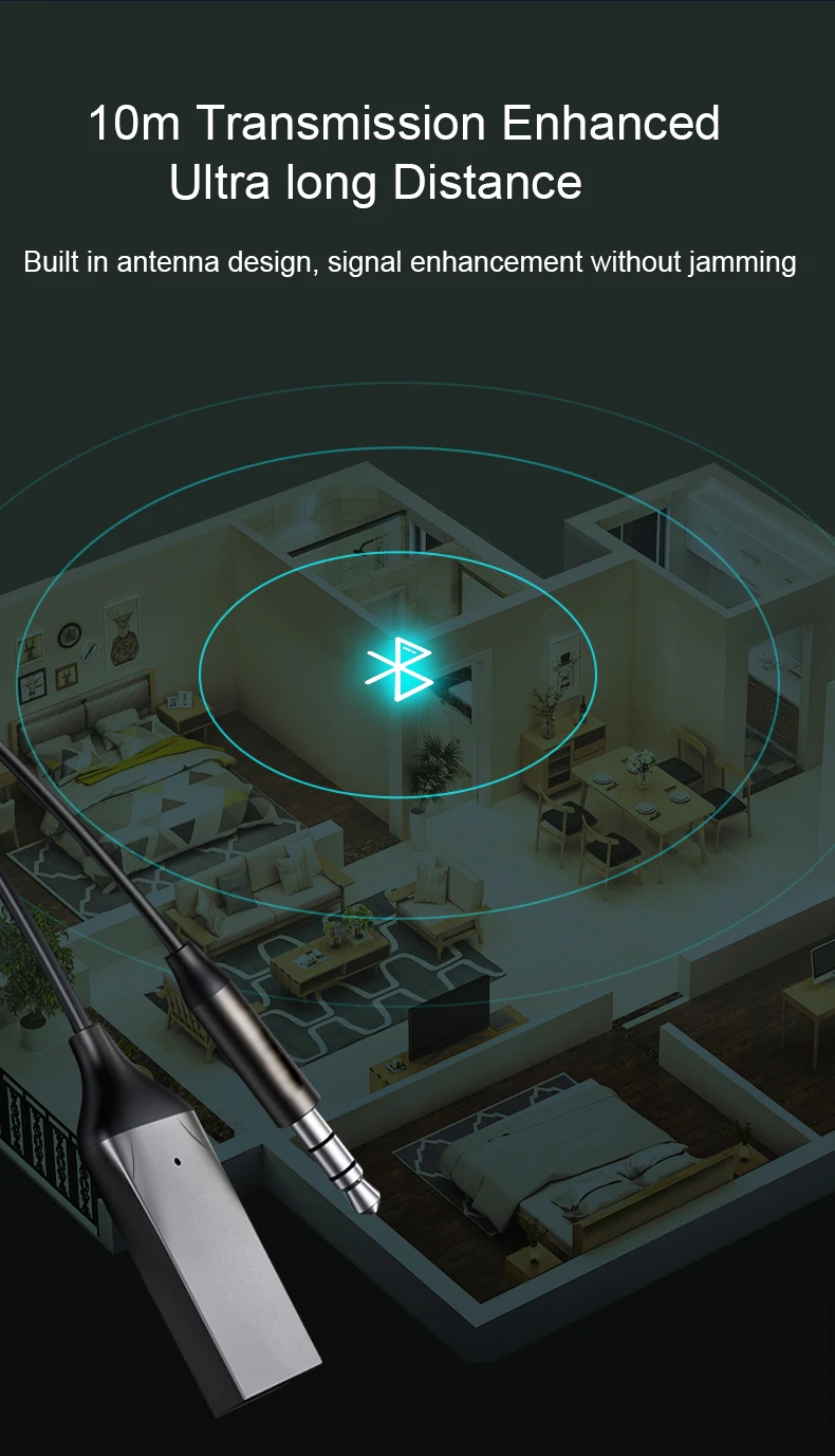 Transmisor Bluetooth inalámbrico para vehículo AUX 3,5mm adaptador Bluetooth 5,0 Cable de Audio para receptor de altavoz de coche transmisión BT