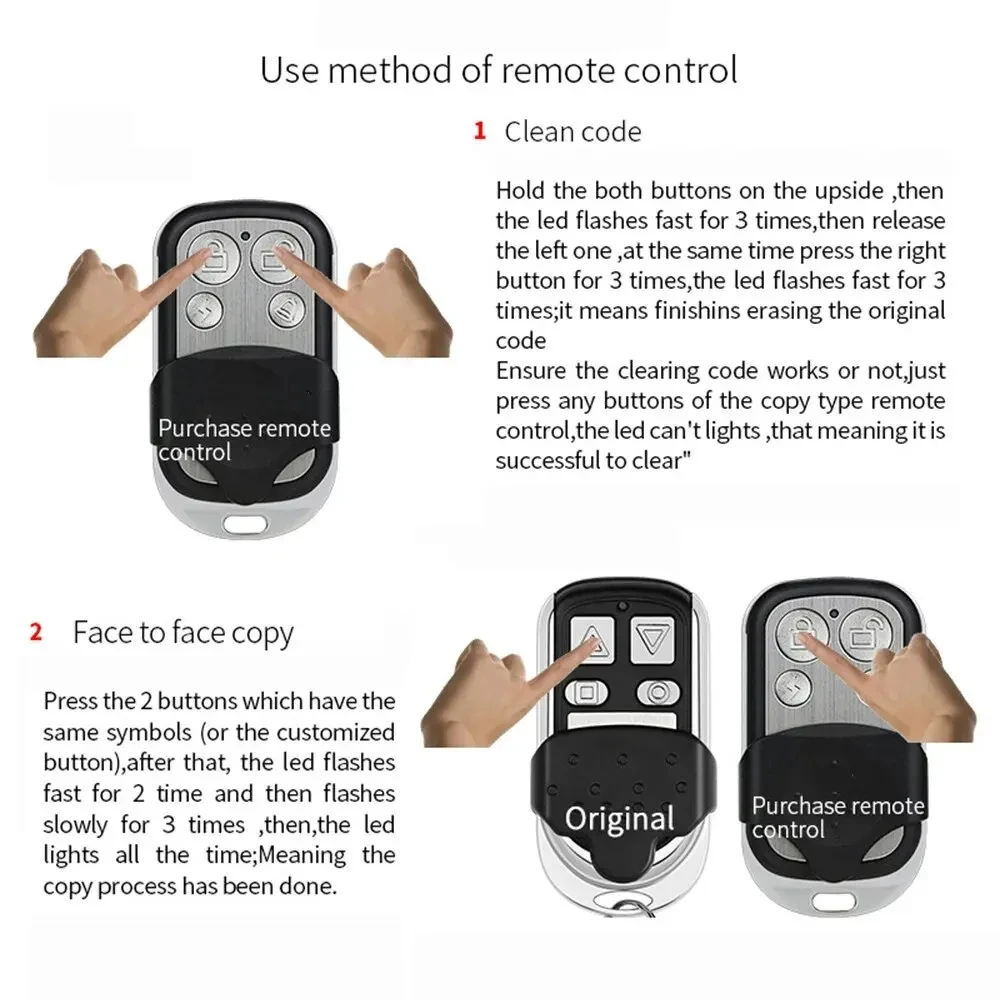 Duplicador de control remoto inalámbrico RF de 4 canales para automóviles, puertas de garaje, puertas de portones, sistemas de alarma, etc.